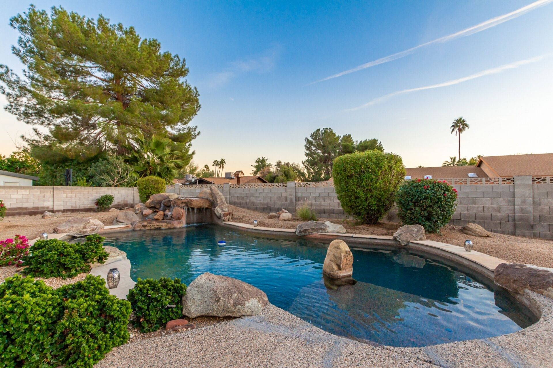 The pool an spa are great for relaxing in the Arizona sun with beach entry & swim up bars. With 5 bedrooms, formal dining and separate living room, there is plenty of room for the entire family.