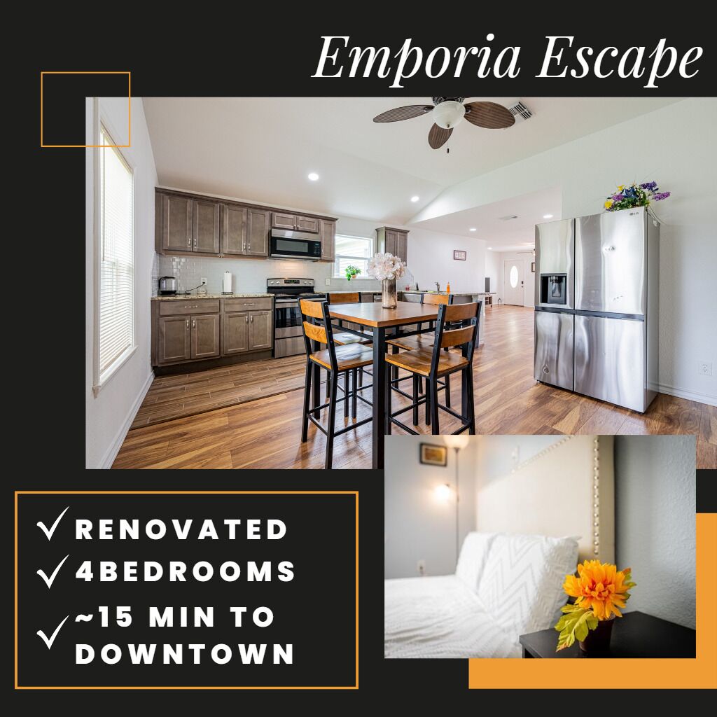 Welcome to Emporia Escape, 4 bedroom, 2 bathroom oasis. Recently remodeled, our home features sleek and stylish decor, creating a calming and comfortable environment. Enjoy free WIFI, free parking, and a fully equipped kitchen We're just a short drive from popular attractions like the Houston Museum of Natural Science and the Houston Zoo.