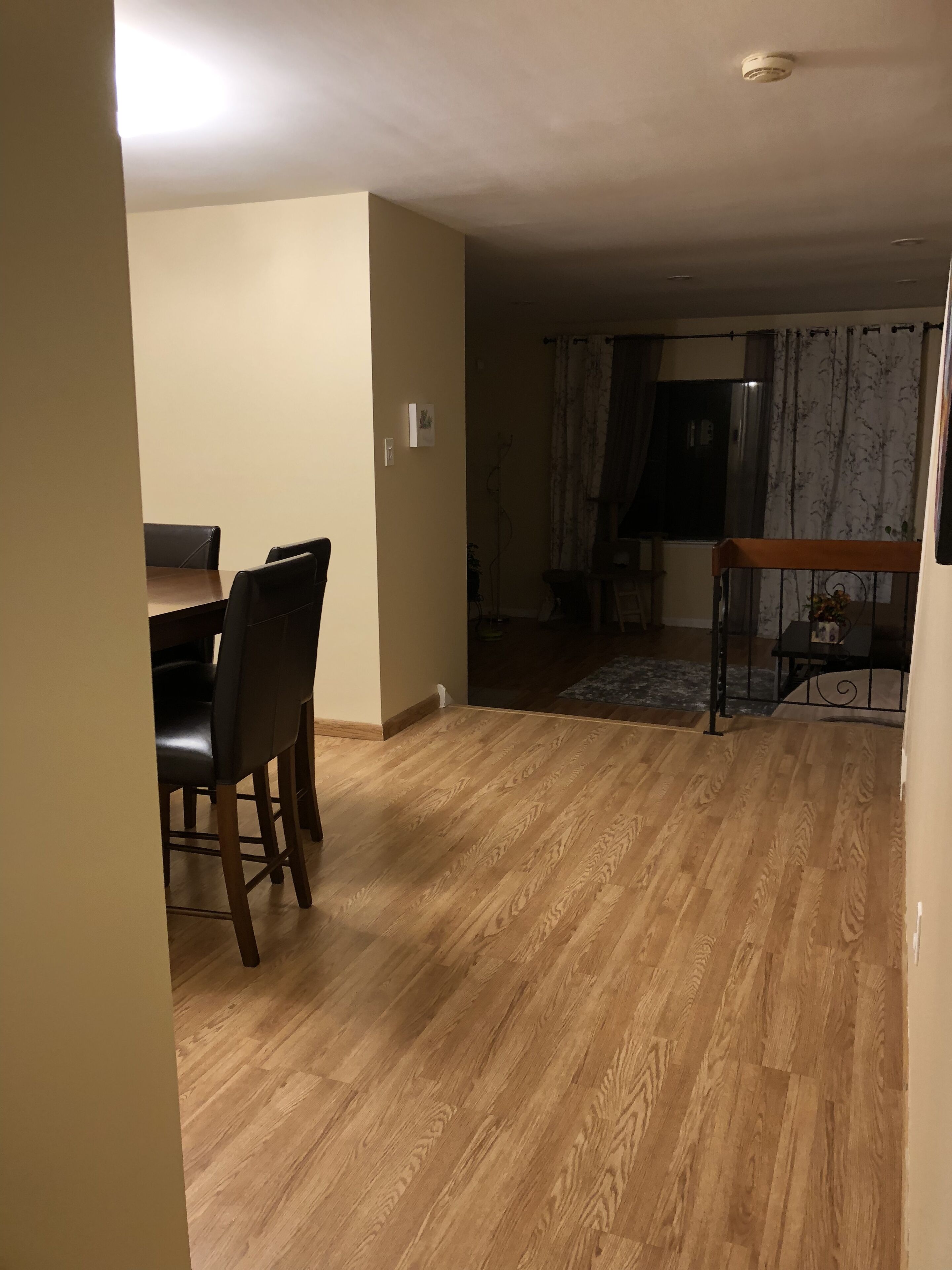 Park your car in your driveway and walk in your private entrance apartment, which is on the lower level, back of the house. Walk in and to the left is the laundry area. Further in is the fully equipped kitchen area, which includes toaster, electric water kettle, and coffee machine with complimentary variety coffee pods. Walk in further pass the kitchen is the living room with a pub table for dining in. Also a leather double reclining couch. Beyond the living room is the bathroom with a huge stand up shower stall (If over 6ft tall you might bend a little). Further in is your huge 1 bed room with a comfortable queen size bed with two big mirror door closets and beyond the bed room is an office area. There’s also an electric blow up mattress that can sleep a 3rd person.