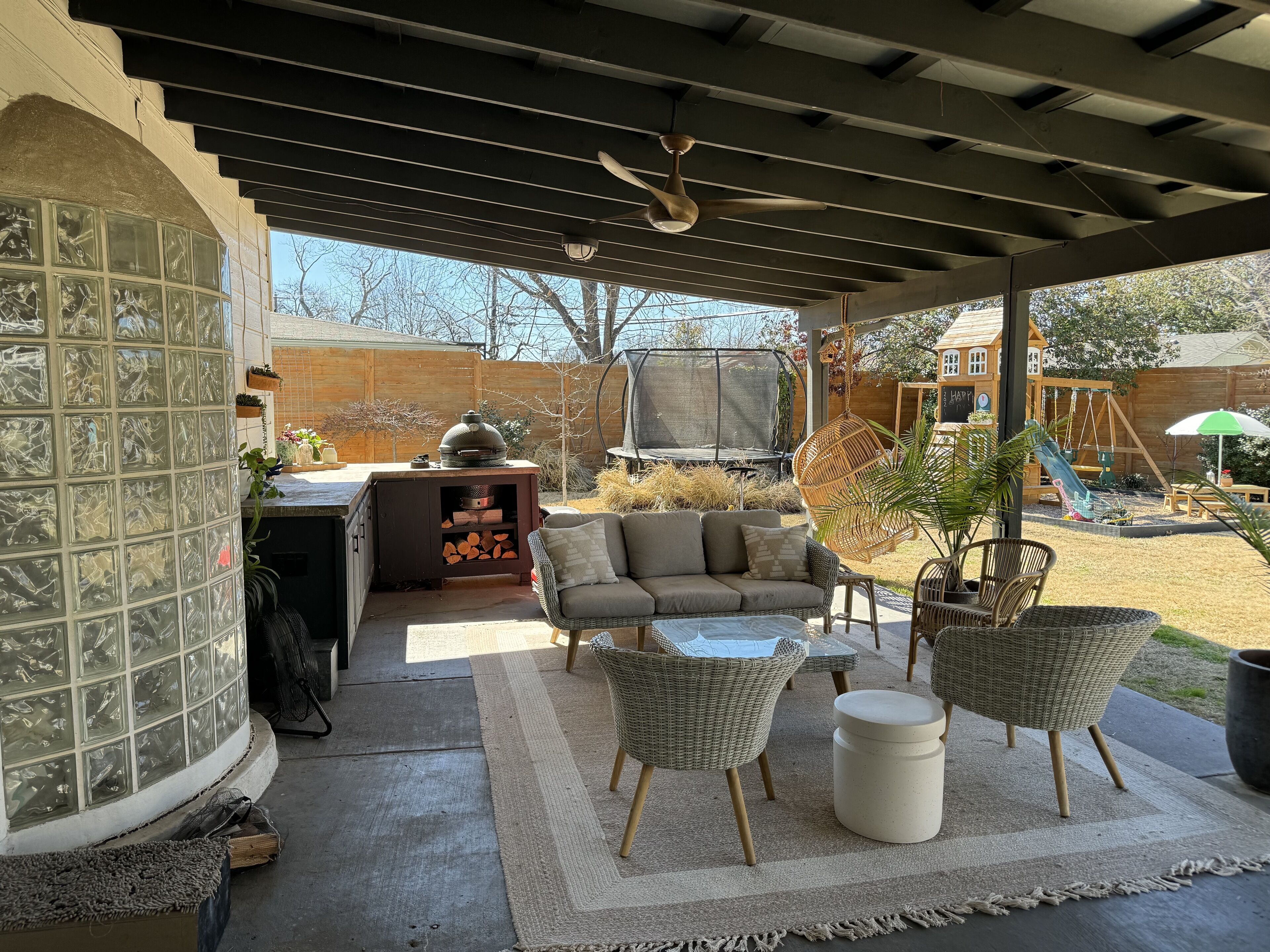 Outdoor garden with BBQ and hammock