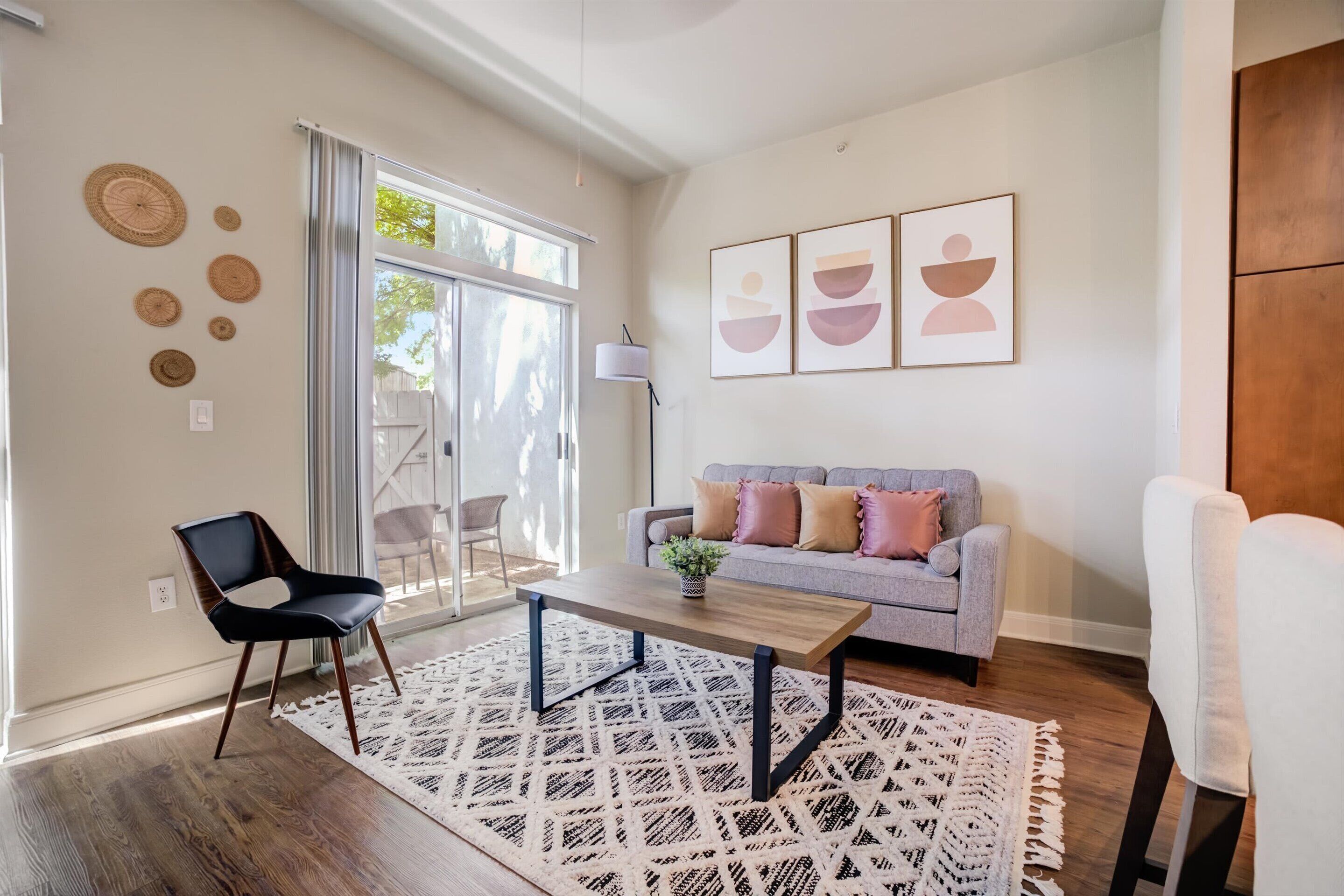 This stylish place to stay is perfect for couples , group trips, family trip all of the above comfortable one bedroom apt with a patio near the pool. Awesome pool with great palm trees that light up at night . Gym also includes a great private area for spin classes, Restaurants 4-5 mins away , awesome small take out dining right underneath the building as well . No loud music to be played during week after 12 pm due to respect of our neighbors / no parties allowed . Must be 21 to book apt .