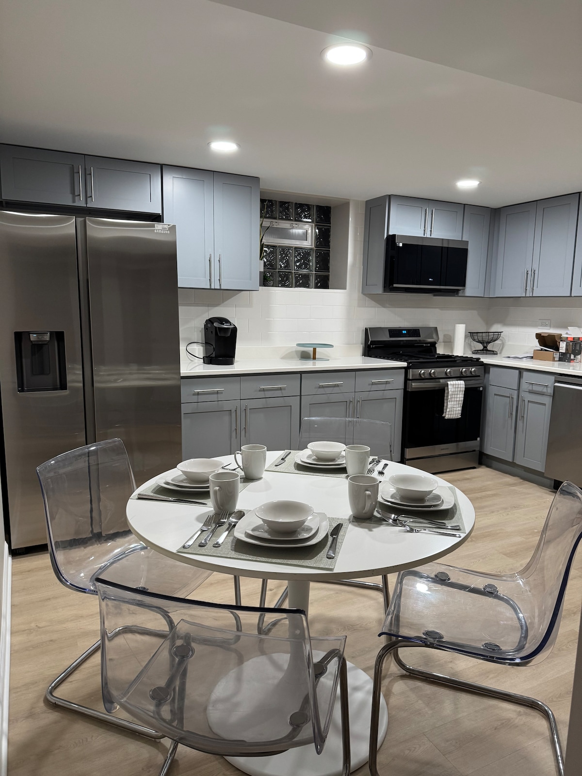 Relax in comfort and style during your stay with thoughtfully designed spaces to unwind. The cozy bedrooms offer a peaceful retreat with modern amenities, including a 4K Smart TV for your entertainment and a tranquil ambiance created by LED backlighting. Whether you're working, relaxing, or catching up on your favorite shows, you'll feel right at home.
