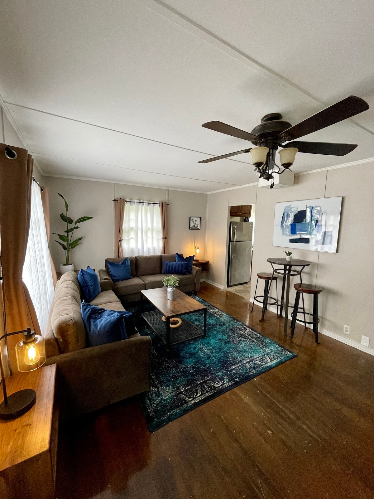 100% cotton bedding, sleeping up to 4 adults. Tankless hot water, 55" Smart TV, laundry, & full kitchen.