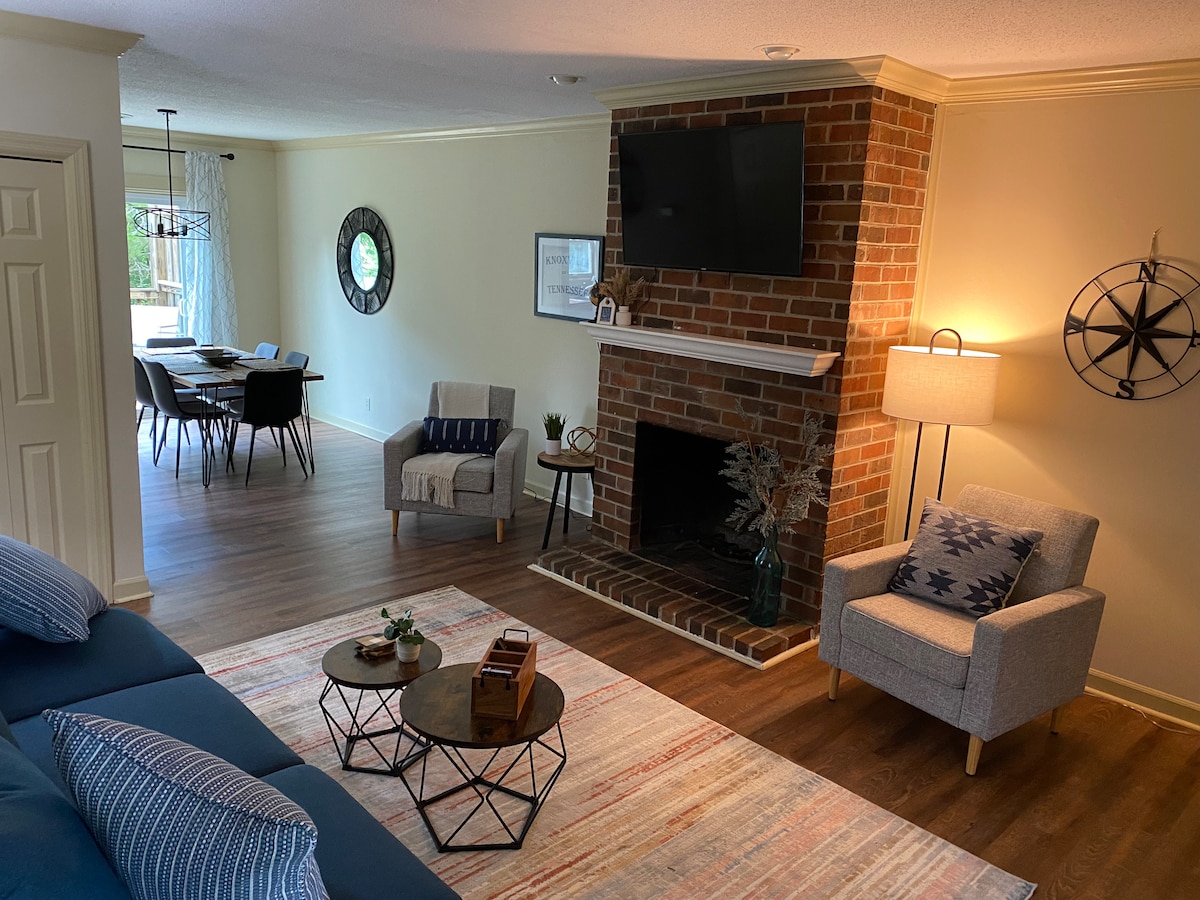 Relax at this peaceful, family style home in the heart of Oak Ridge. Whether here for business or pleasure, the Little Nook is perfect for working professionals or a family ready to enjoy the charm of East Tennessee. The home comes fresh with new flooring, walls, and a bathroom with a luxurious walk-in shower. It’s equipped with everything needed for a fulfilling stay - smart tv, dishwasher, washer and dryer, and cool sage tones throughout the house for a light and relaxing atmosphere.