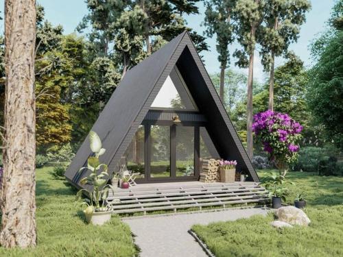 Welcome to The Retreat at Lake Noire where panoramic paradise awaits in our A-Frame tiny cabin. This perfect retreat offers stunning lake views for up to 3 guests, with a loft bedroom, modern comforts, and an expansive deck. Enjoy outdoor dining, and evenings by the fire pit. Experience the epitome of tranquility and scenic beauty in this picturesque escape.