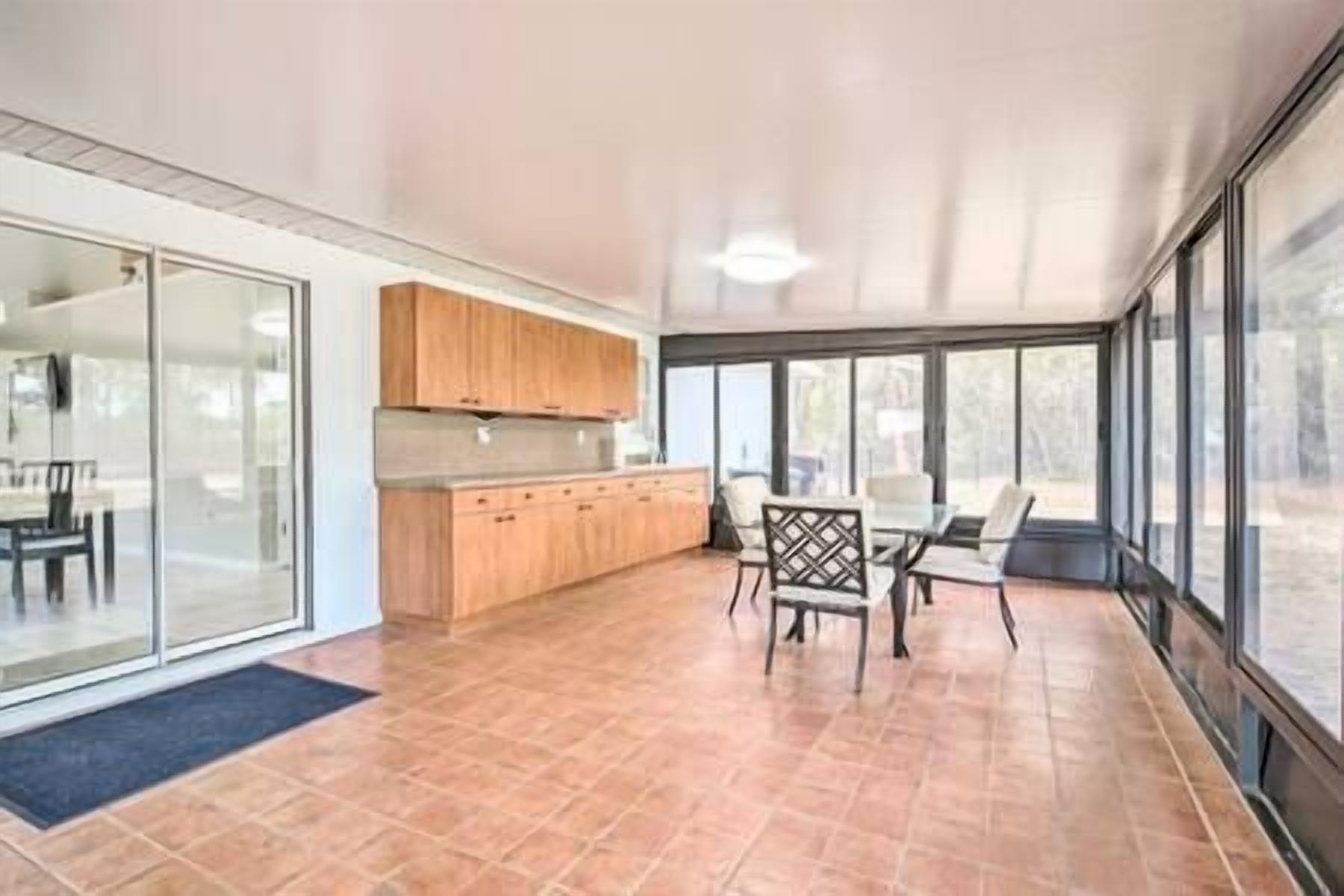 Beautiful log home guesthouse. A get-a-way on acreage, nestled in woody area. Features spacious great room with a cozy lodge feel, 2 bedrooms and 2 full bathrooms. Full kitchen & Laundry. Screened in Front porch, paved driveway and carport. Newly installed working hurricane shutters! Nearby restaurants & many restaurants within 10 Miles. Great for walking, hiking or bicycling. Relax & enjoy The Villages shopping and restaurant offerings but come back to peace, beauty and tranquility.