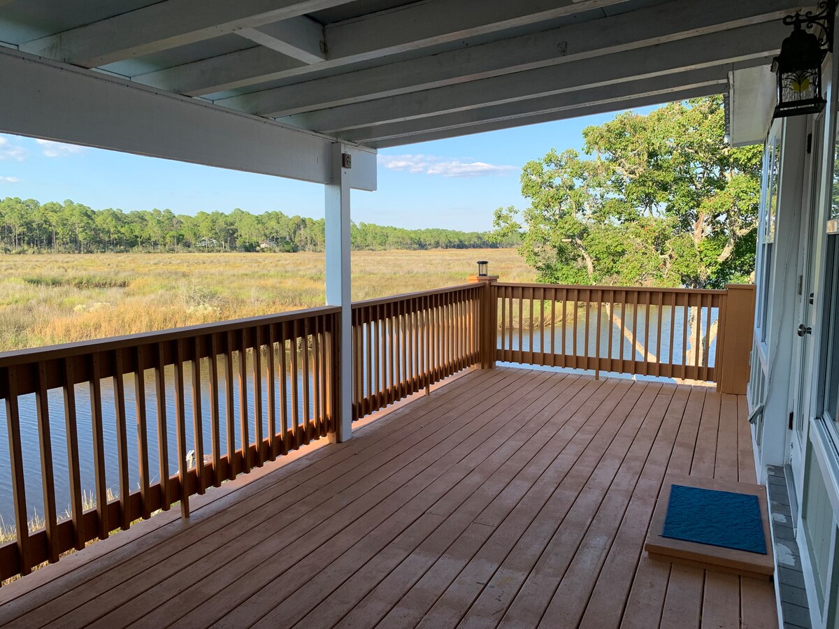 View,View,View; Perfect for families and Bird watcher enthusiasts. Includes Wi-Fi and televisions with most of America's favorite streaming services. Ample free parking. Minutes from Downtown Ocean Springs and the Casinos in Biloxi. Pet Friendly! Good fishing and crabbing in the backyard.