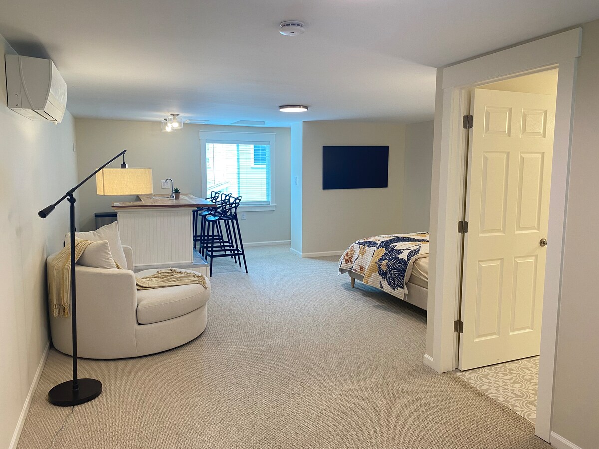 entire fist floor with full bath off private bedroom.