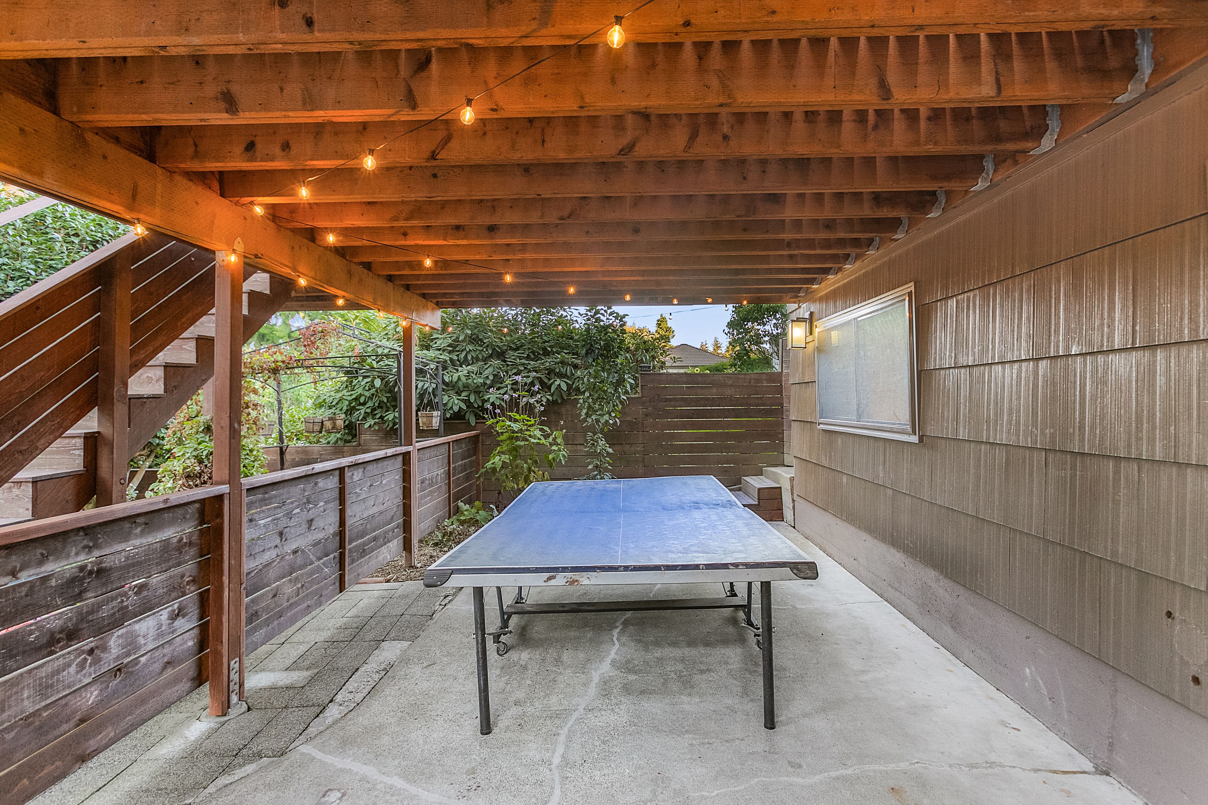 A separate side entrance from your own parking spot gives you freedom to come and go along with an outdoor covered dining patio. You come in the side gate, along the side of the garage, into the garage through a keypad door and just inside the garage there is a lockable door going up the 12 stairs to the studio. There are extra parking spaces if you are meeting someone here.