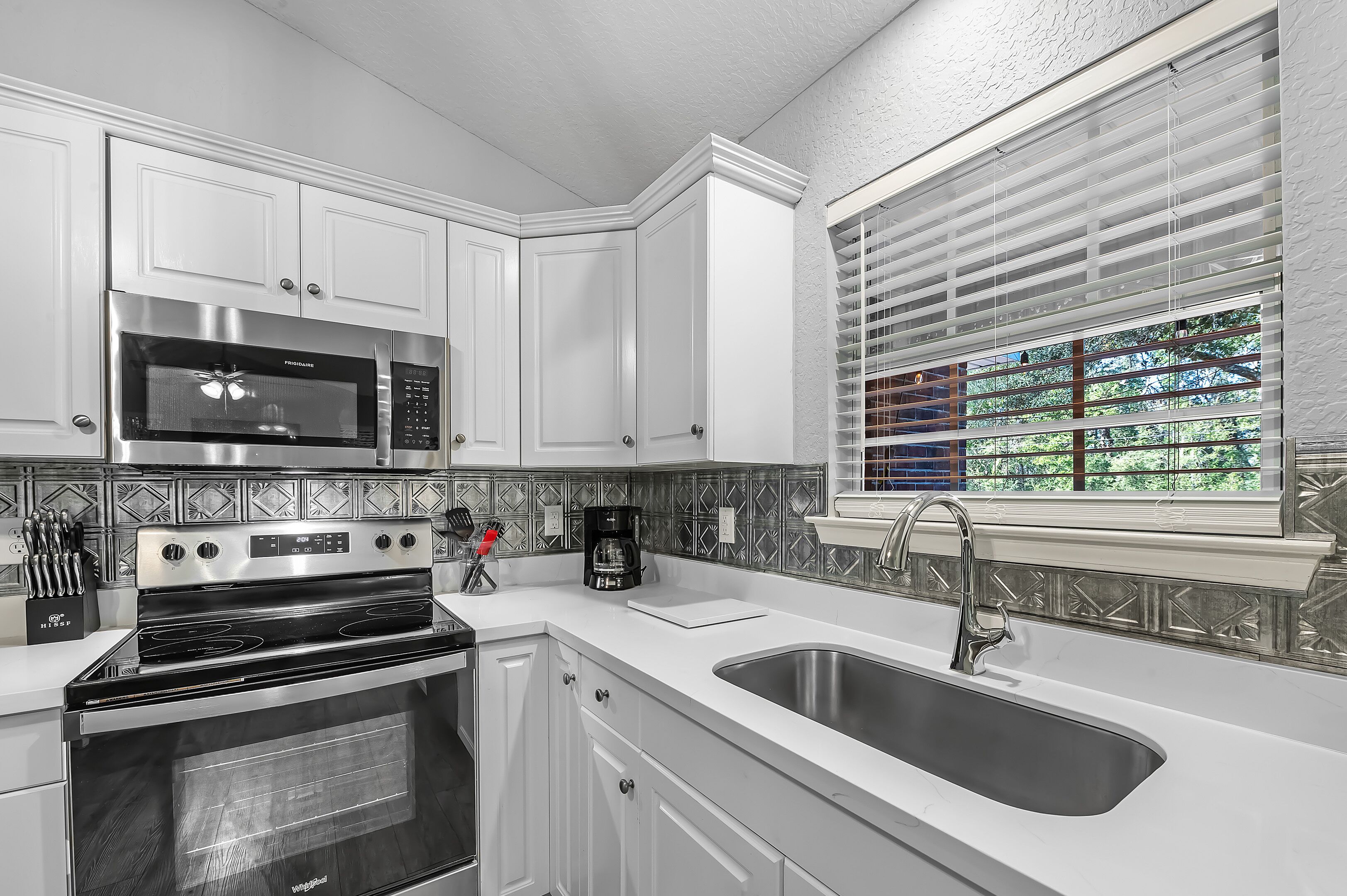 When you enter the home, you will be delighted with the updated décor and coastal vibe. The open living area features a modern kitchen with appliances and cooking essentials to make delicious meals during your stay. In the living room there is a large screen smart tv, and comfortable seating. There are beautiful kitchen counters, counter stools and a small table where you can enjoy homecooked meals. Don't feel like cooking? There are plenty of local restaurants located nearby including local's favorites Hub Stacey's and The Pointe