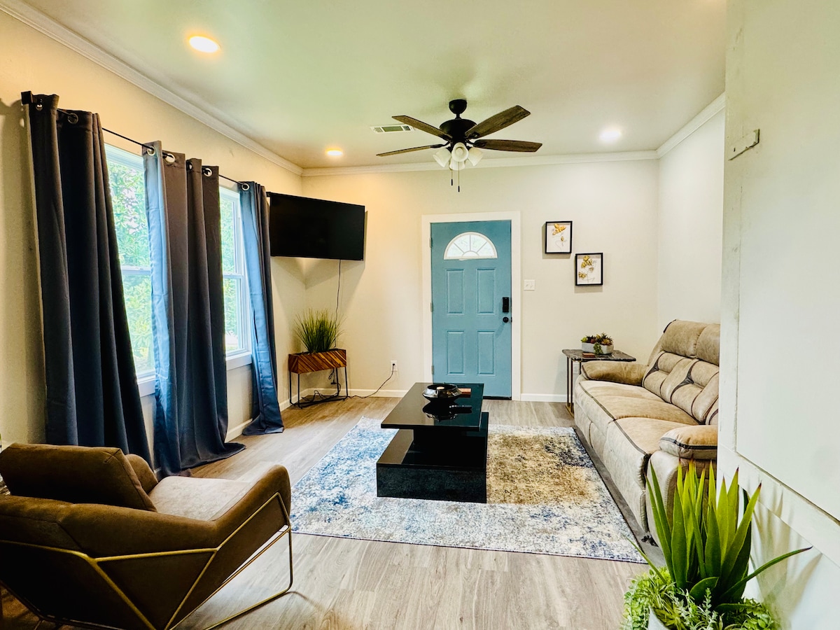 Enhance your stay in Opelousas with this captivating residence, where warmth and hospitality are always extended. Two serene bedrooms, a beautifully appointed bathroom, and a cozy living room with a comfortable murphy bed ( upon request ) combine to create the ultimate retreat for relaxation and rejuvenation. Take a moment to unwind on our charming front porch and seize the opportunity to create lasting memories .