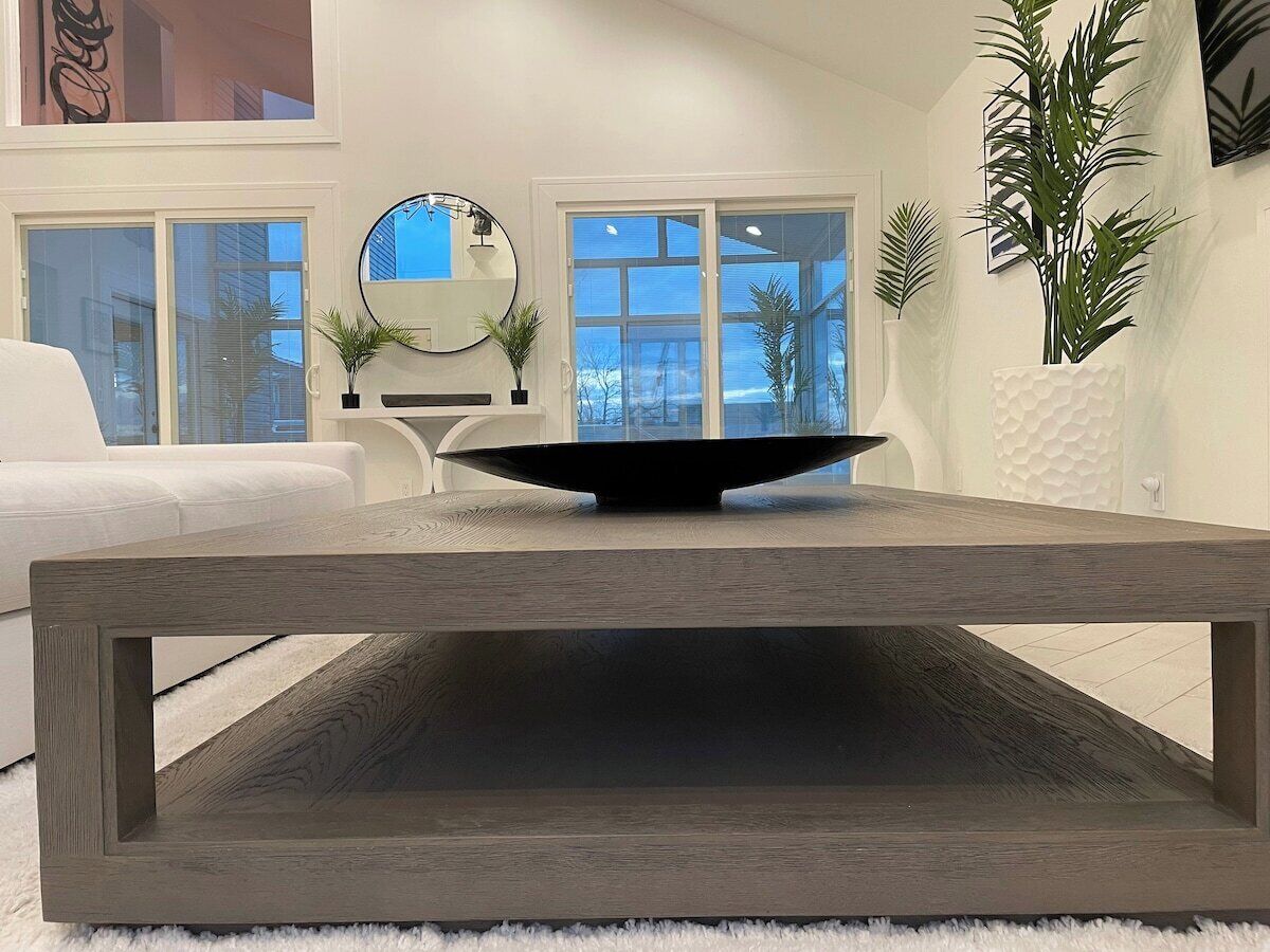 The family room is generously sized and includes a large sectional couch (with two recliners), card table with seating for four, and a separate recliner. This room is surrounded with floor to ceiling windows and sky lights that allow ample sunlight to fill the room. The family room, which is flanked by two separate outdoor decks accessible via two sliding doors, is a great place for gatherings and watching your favorite shows or cheering your teams on a large flat screen TV.