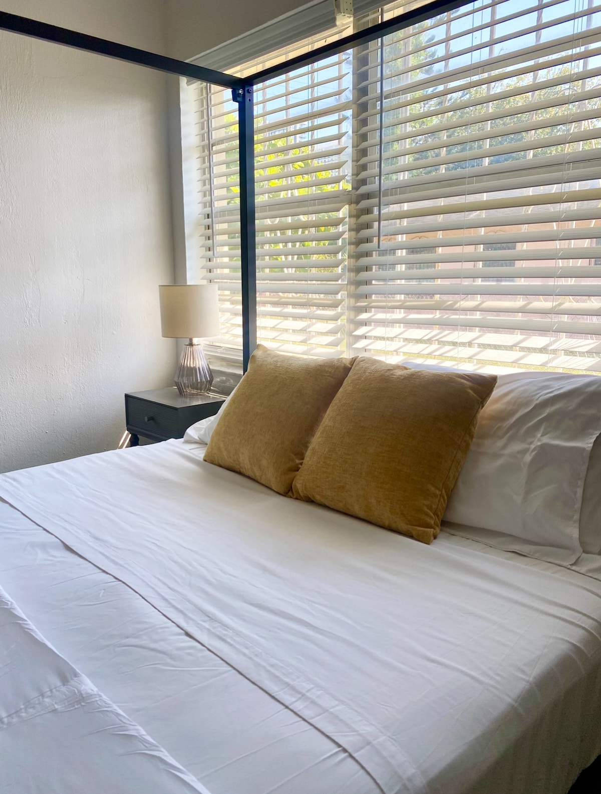 Inside the apartment, you'll enjoy a fully equipped kitchen, a comfortable full-size bed with fresh linens, and complimentary toiletries for your convenience. The living room features an Ikea Hemnes day bed, making this space perfect for up to four guests.