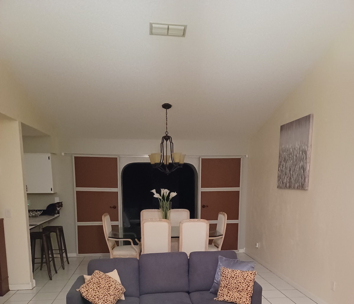 Guests are welcome to use the patio. Guests DO NOT HAVE ACCESS TO THE SWIMMING POOL. Inside help yourself to our coffee station on the counter. THERE IS NO ACCESSTOTHEKITCHENTO COOK. You are welcome to use the microwave to reheat, you may put things in the refrigerator. YOU MAY NOT USE THE WASHER OR DRYER.