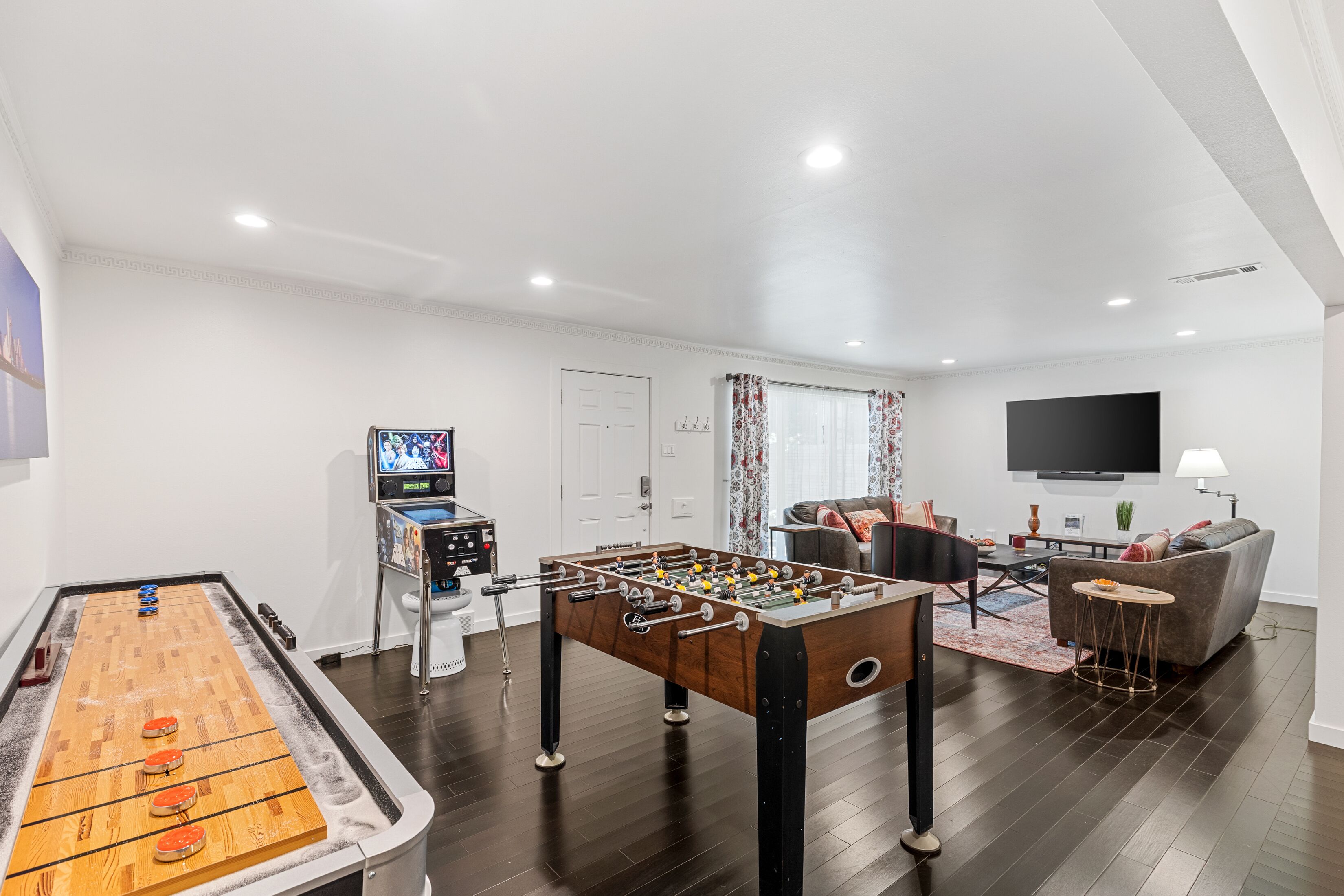As you approach the front door on the winding walkway the meticulously maintained verdant front yard is the first sign that this is not your typical “investment AirBNB.” If you are checking in at night, you may notice a robotic mower silently cutting the gras, while it’s perfectly safe, please inform any children that it’s a “look but do not touch” item.