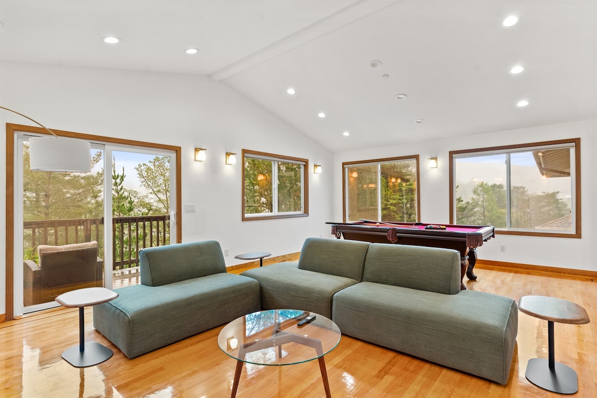Amidst the moments of slumber and gastronomic delight, the property invites you to spread out and relish the ultimate spa experience. Immerse yourself in the heated pool, luxuriate in the hot tub, or rejuvenate in the custom barrel hot sauna—all while soaking in the panoramic views that surround you. The Pacifica Poolside Oasis is not just a getaway; it's an immersive escape into unparalleled coastal elegance.