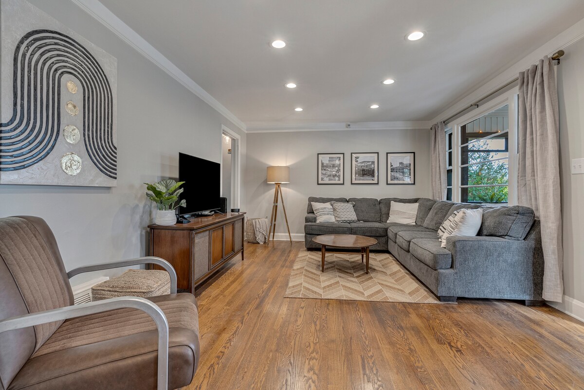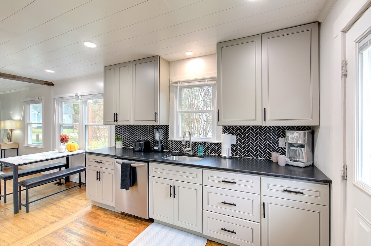 Ideal for visitors! Pet-friendly, home on 1.5 acres of privacy, with campfire/picnic area, all modern amenities, fully updated December 2021, rare privacy this close to downtown Greenville. Super cozy, @BR/2ba, Family room with additional sleeper sofa. Front and back porch with relaxing sitting areas, fully equipped and spacious modern kitchen. Minutes to Falls Park, cafes, restaurants and more.