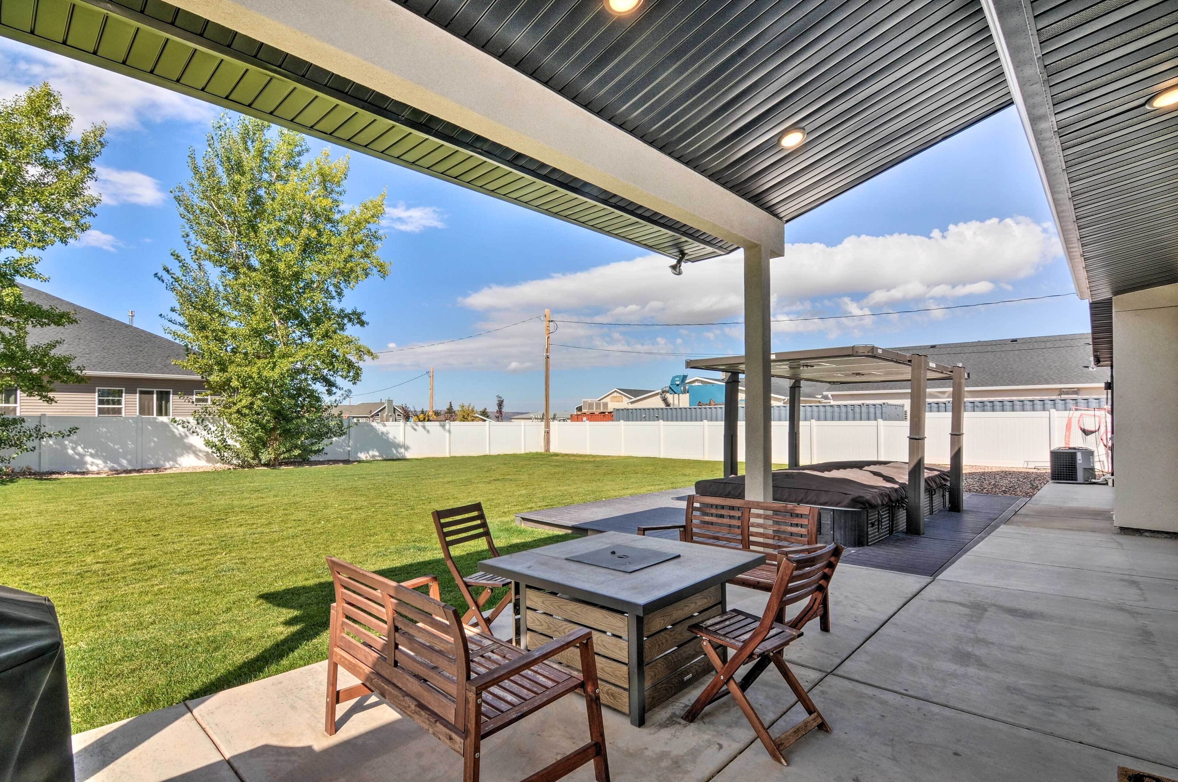The entire yard and all structures are available to guest. From the spacious Grand Circle Inn, the 3 car garage, the Cozy Cabin, and the cute Hidden Haven basement.