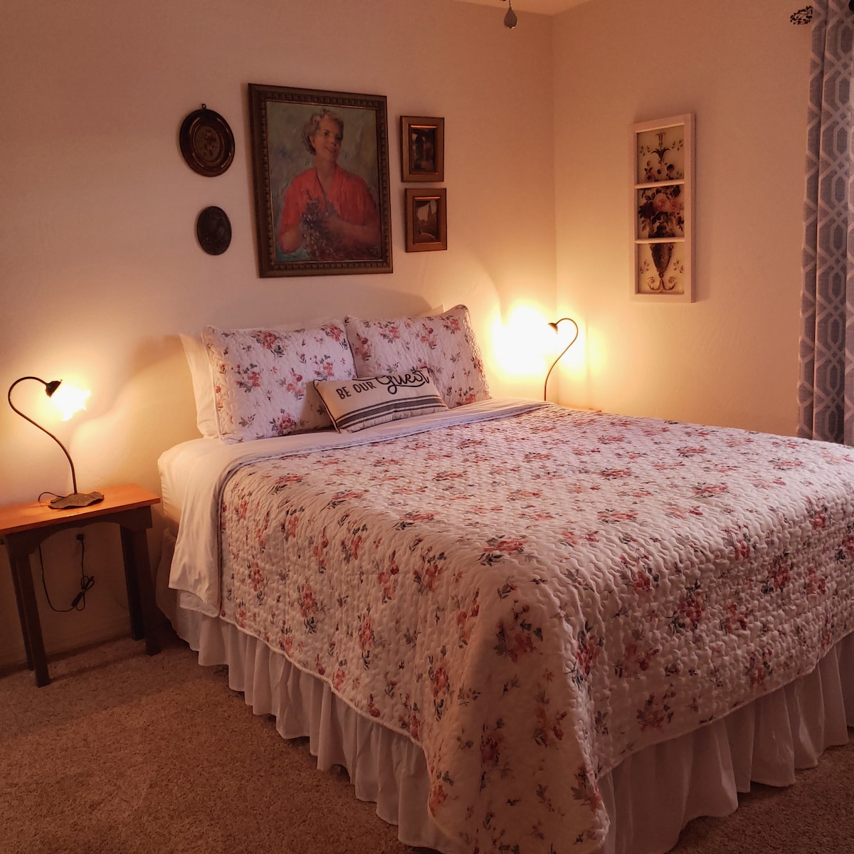 Enjoy a relaxing stay amidst country charm in this sparkling clean room, complete with shared bathroom, vanity, work space, sleep machine, and garment steamer.