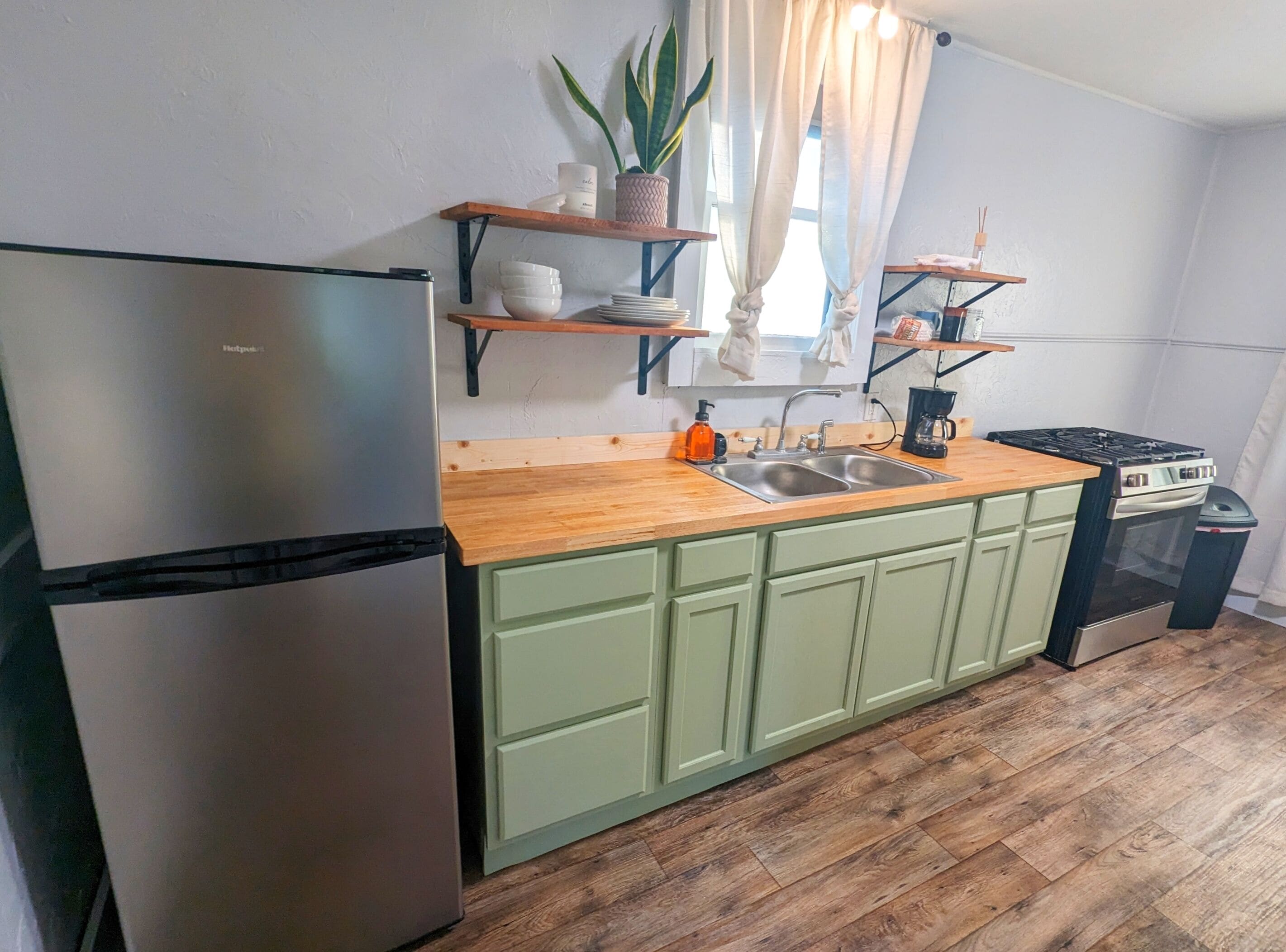 • Kitchenette with sink, mini-fridge, toaster, and basic dishes