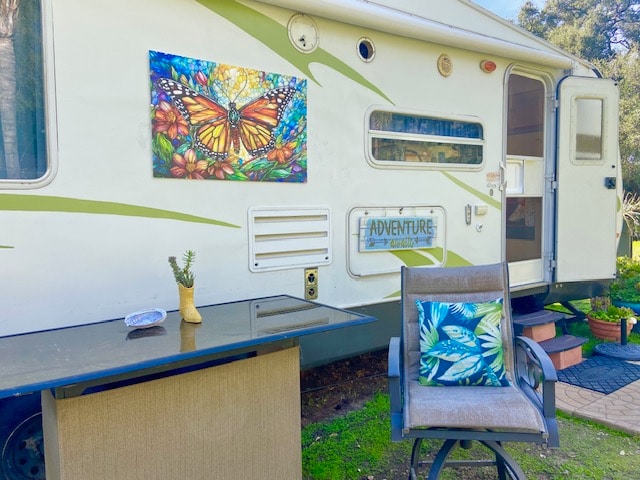 Be prepared to unplug and unwind, but in case you want to Netflix and chill, we got you covered too. There is patio furniture on the porch to enjoy the incredible surrounding landscape and offers the perfect place to eat at. Plenty of parking for vehicles of all sizes. A private parking space will accommodate any size vehicle