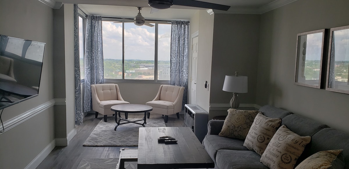- "My daughter and I were in Atlanta for a volleyball tournament and decided to forgo a hotel. This place was just as pictured. Was so comfy and cozy after a long day on the courts." - "Everything was perfect. The condo was beautiful, clean, smelled great, and the view couldn't have been any better. Host was very prompt with response time. I would definitely book this place again." - "Overall stay was great ! The view was great ! Communication with the Host was prompt. Everything was just as pictured. "