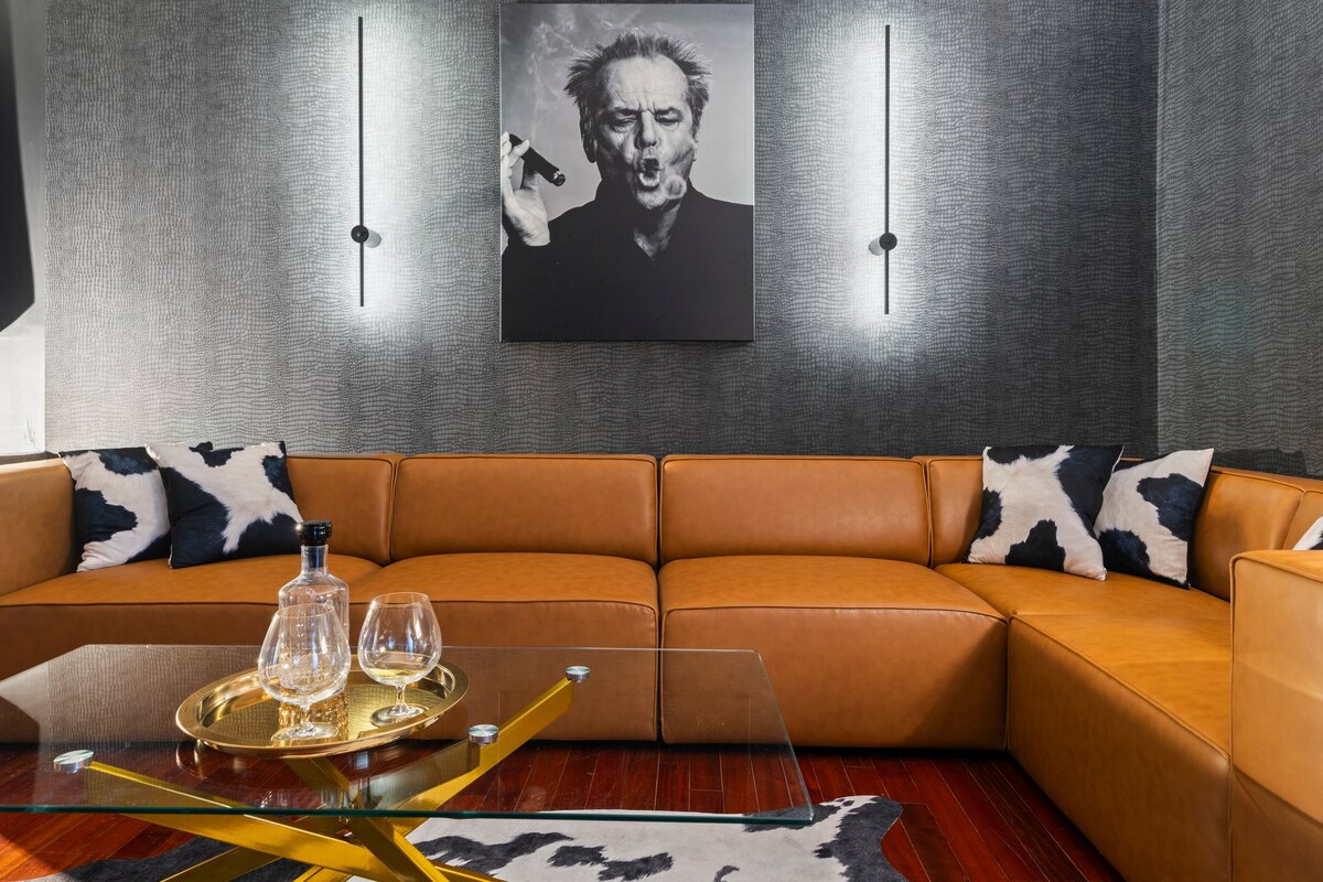 This generous space boasts a unique style all its own. Located on the top floor of a two-unit building, the oversized kitchen features a gourmet coffee bar. The master suite is adorned with black crocodile wallpaper, and a stunning chandelier hangs above the king-sized bed, complemented by a makeup vanity with LED lighting. Center City is just a 10-minute drive away, and attractions like Wells Fargo Center, Lincoln Financial Field, Xfinity Live, and Citizens Bank Park are in South Philadelphia.