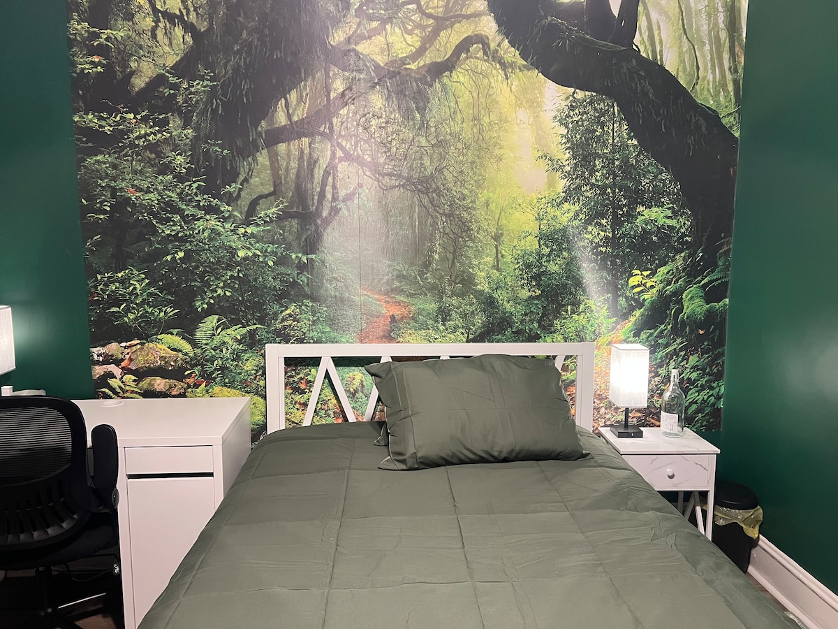 The bedroom and the shared bathroom are fully renovated with all brand new furniture as well as the house completely