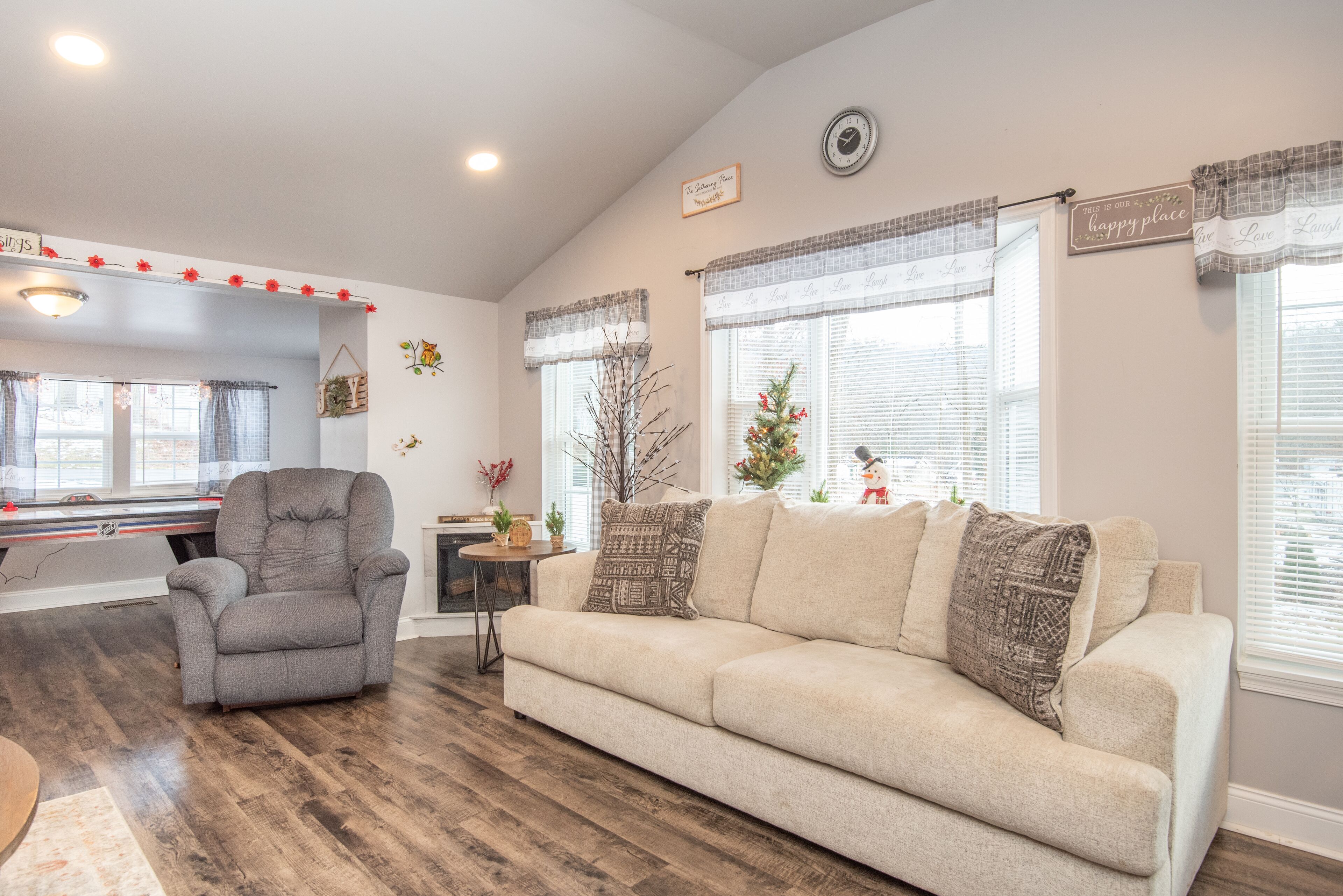 Nestled in a beautiful country farm setting, enjoy the peaceful country life, all while taking in the Mountain View from the back deck or the farm setting from the front porch.