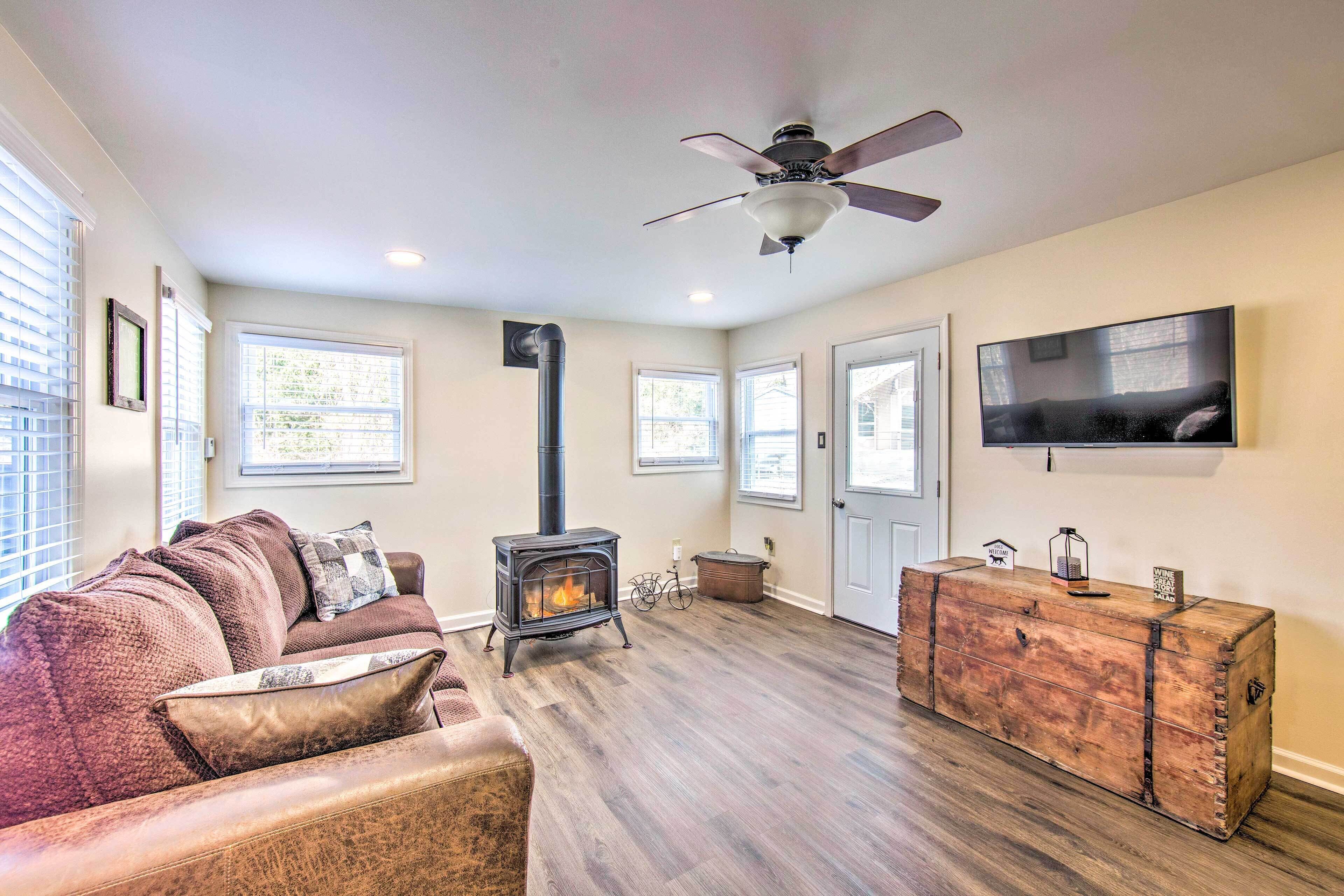 Escape the city noise and book a stay at this rustic cabin in Pine Grove! Nestled on a wooded lot across the street from Sweet Arrow Lake, this 3-bedroom, 2-bathroom vacation rental features a fully equipped kitchen, a wood-burning stove, and a peaceful location away from the hustle and bustle of everyday life. Cast a line in Blue Mountain Fishing Lakes, traverse the Appalachian Trail, or pay a visit to Hersheypark! Come evening, head home to roast s’mores around the fire pit with loved ones.