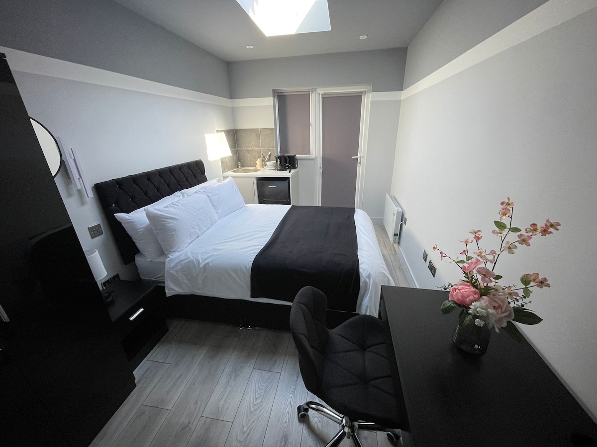 Enjoy a cosy, modern studio with a shared Light Cooking kitchen and private bathroom.