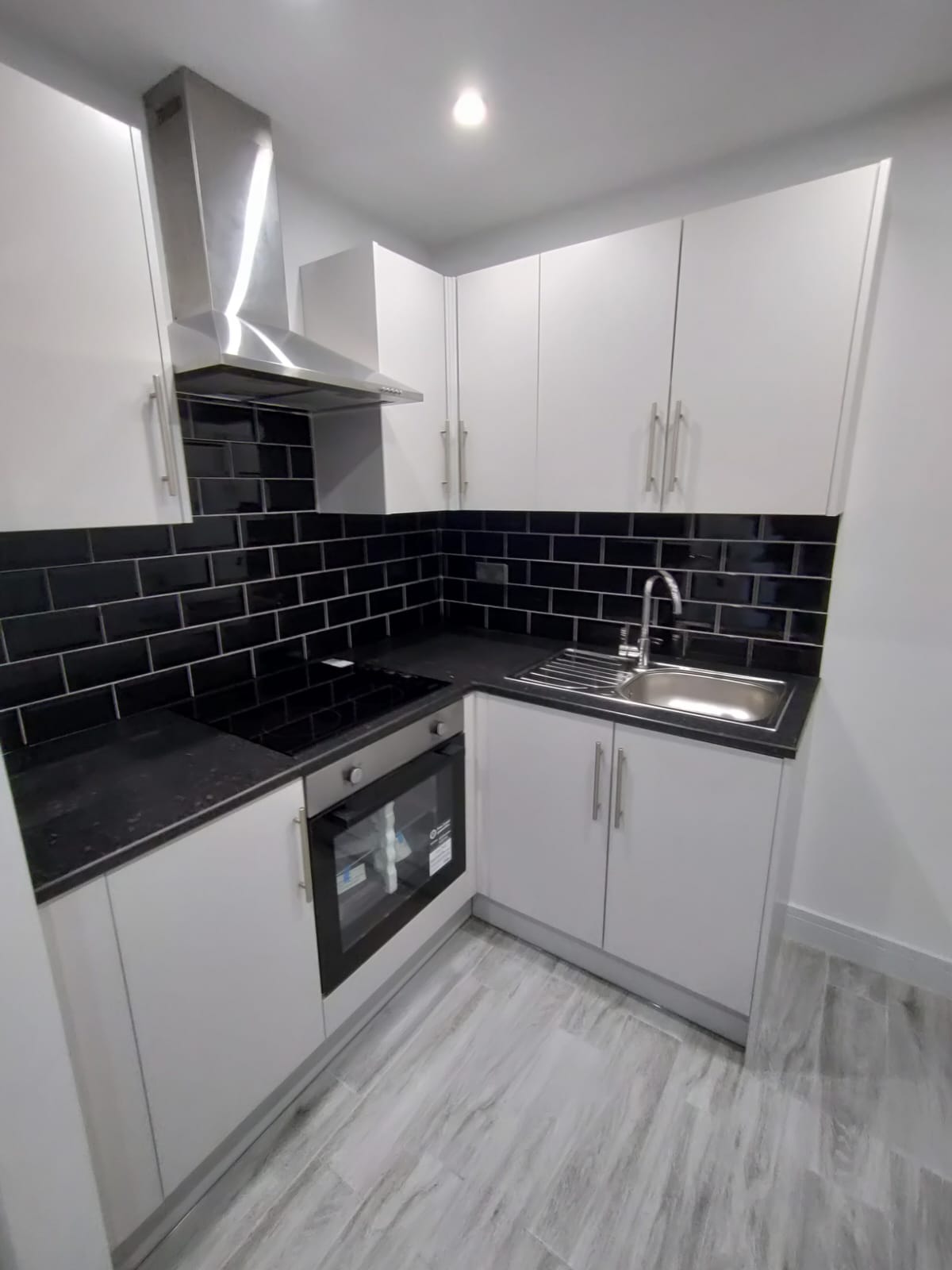 Newly refurbished 2 bedroom apartment on 1st floor. Main property door leads to a lobby which is shared with the ground floor apartment. You need to go up 1 flight of stairs to the apartment which consists of 2 bedrooms, 1 bathroom, and 1 living room/kitchen.