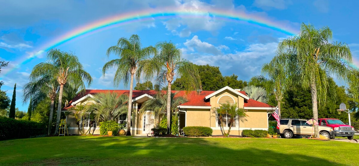 The house is on 5 acres of sprawling Florida country. The house is entirely brand new on the inside and designed with comfort and luxury in mind. Your home away from home experience.