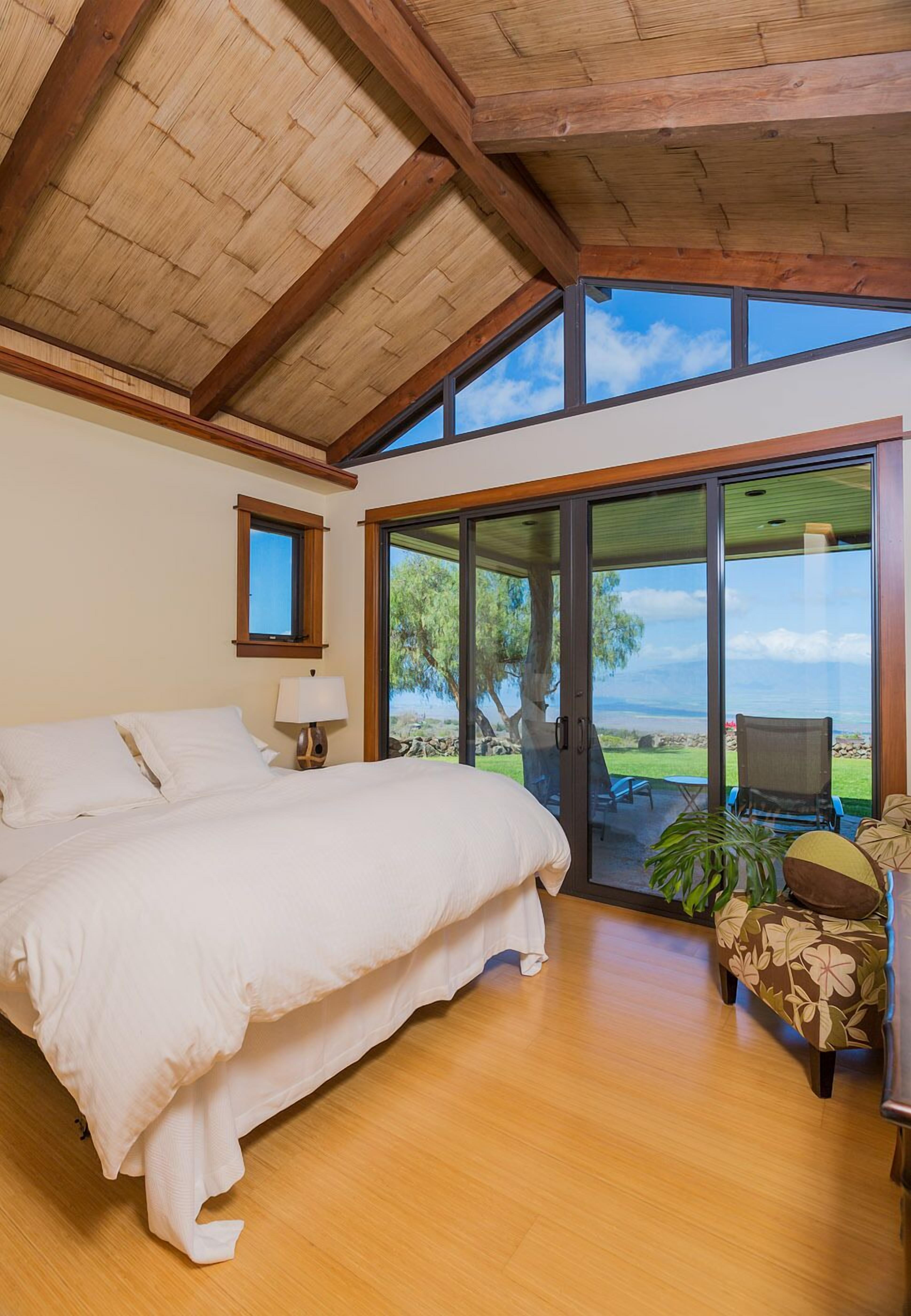 This dream come true Maui vacation home allows you to enjoy both the sunrise and sunset from the privacy of your own home away from home. This private gated retreat on 33 acres has stunning panoramic ocean, multi-island and mountain views. This designer home features lava rock construction and Kiawe tree columns. The high ceilings are covered in eye soothing bamboo and the bamboo floors are beautiful and soft on your feet. The gourmet kitchen is a chef's ideal with spacious black granite counter-tops, stainless appliances and cherry cabinetry.