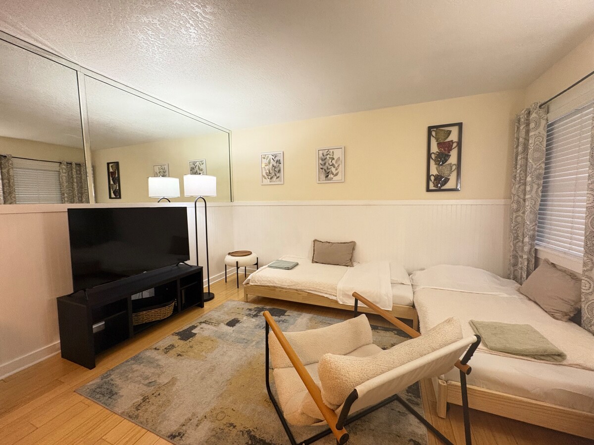 Inside, you’ll find a thoughtfully designed space with all the essentials you need for a relaxing vacation. The bedroom offers a peaceful place to rest after a day in the sun, while the living area and kitchen provide a comfortable setup for meals or winding down. Outside, guests are welcome to enjoy the shared backyard area—perfect for morning coffee, reading in the shade, or gathering after a beach day. With restaurants, shops, and local attractions close by, this unit puts you right in the center of Cocoa Beach’s fun, beachy vibe.