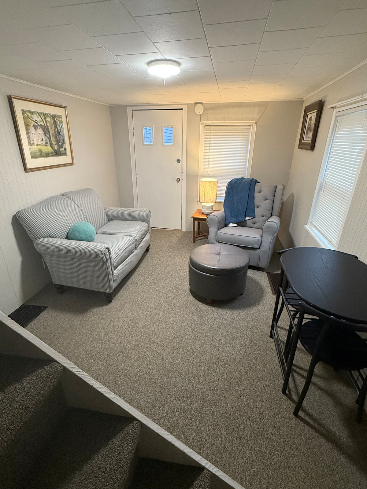 To access the space you will park in the parking lot behind the building. You will be provided lock codes for entry. The apartment is up one flight of stairs.