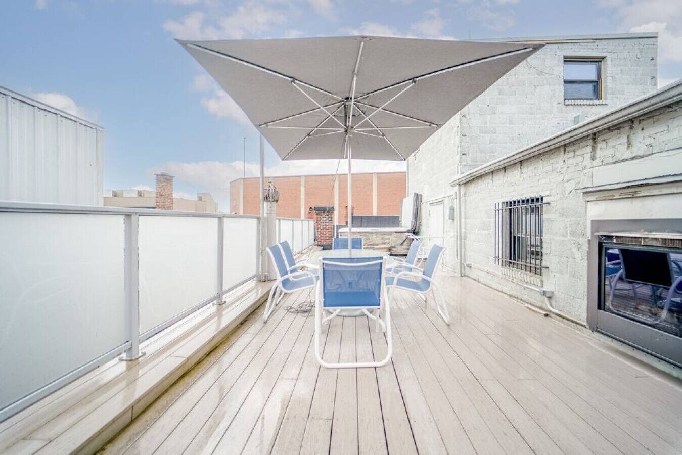 The 200 sq. ft patio is spacious and features a hammock and sitting area that is great for reading and relaxing.