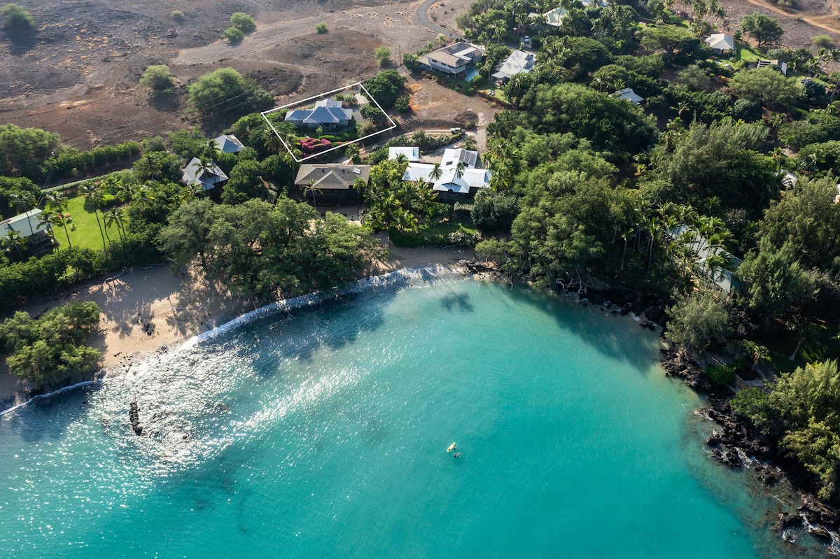 Aina Malia, a unique property, is situated above beautiful Wailea Bay on the Kohala Coast of the Big Island of Hawaii, one of the few white sand beaches on the island of Hawaii. Beautiful tropical landscaping abounds with privacy and romance. Custom designed home is perfect for family and friends.