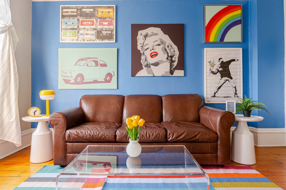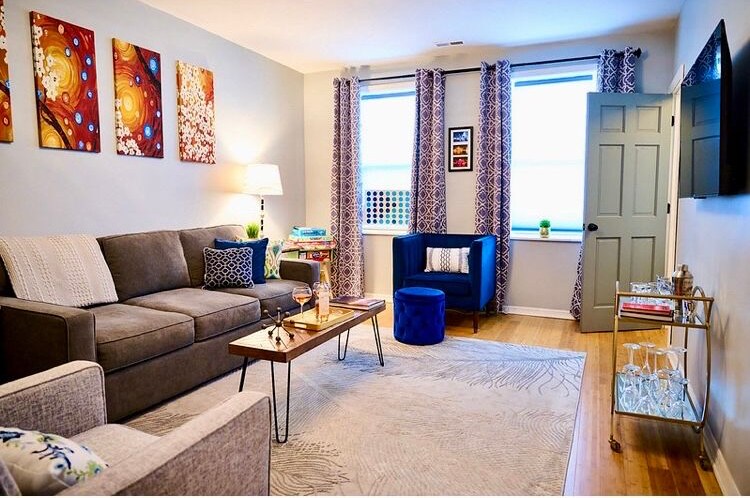 10 minutes from Downtown, the Salt Shed and Lincoln Park! Find comfort in this Urban Sanctuary! Enjoy the art galleries on Chicago Ave and the Boutiques and Restaurants on Division St. Take the Division St. CTA Blue Line and in a few stops and you’re in Downtown Chicago. After a busy day let our “oh-so-comfortable beds” lull you to one of your best night’s sleep. Enjoy the stylish living room with a queen sofa sleeper, recliner, plush velvet chair, and 55” Roku TV and high-speed internet.
