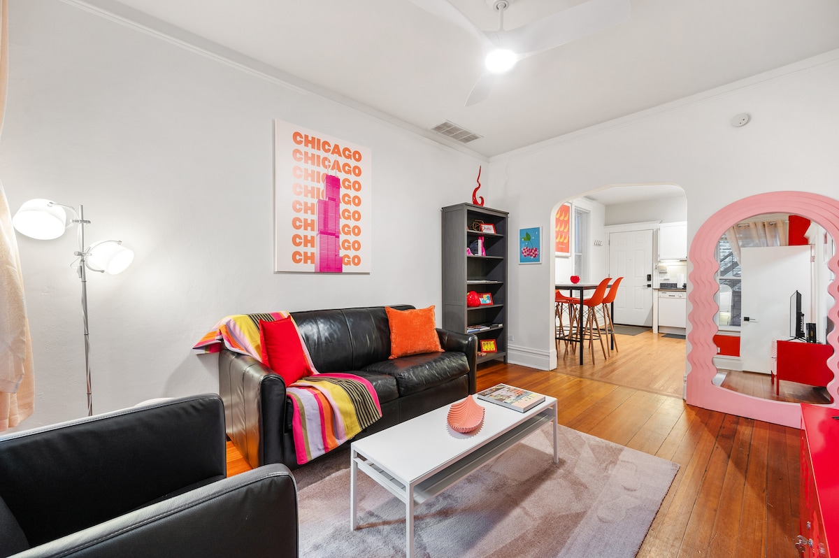10 minutes from downtown, the Salt Shed and Lincoln Park! Enjoy a getaway in the City at this 2 Bdrm Wicker Pk sanctuary and enjoy a complimentary bottle of wine. Visit the art galleries & romantic restaurants or catch a concert at the Salt Shed. Enjoy the 1950s-themed kitchen & graffiti-art-decorated living room. Let our “oh-so comfortable beds’ lull you to your best night’s sleep or relax on the queen sofa sleeper and enjoy the 55” Roku TV.