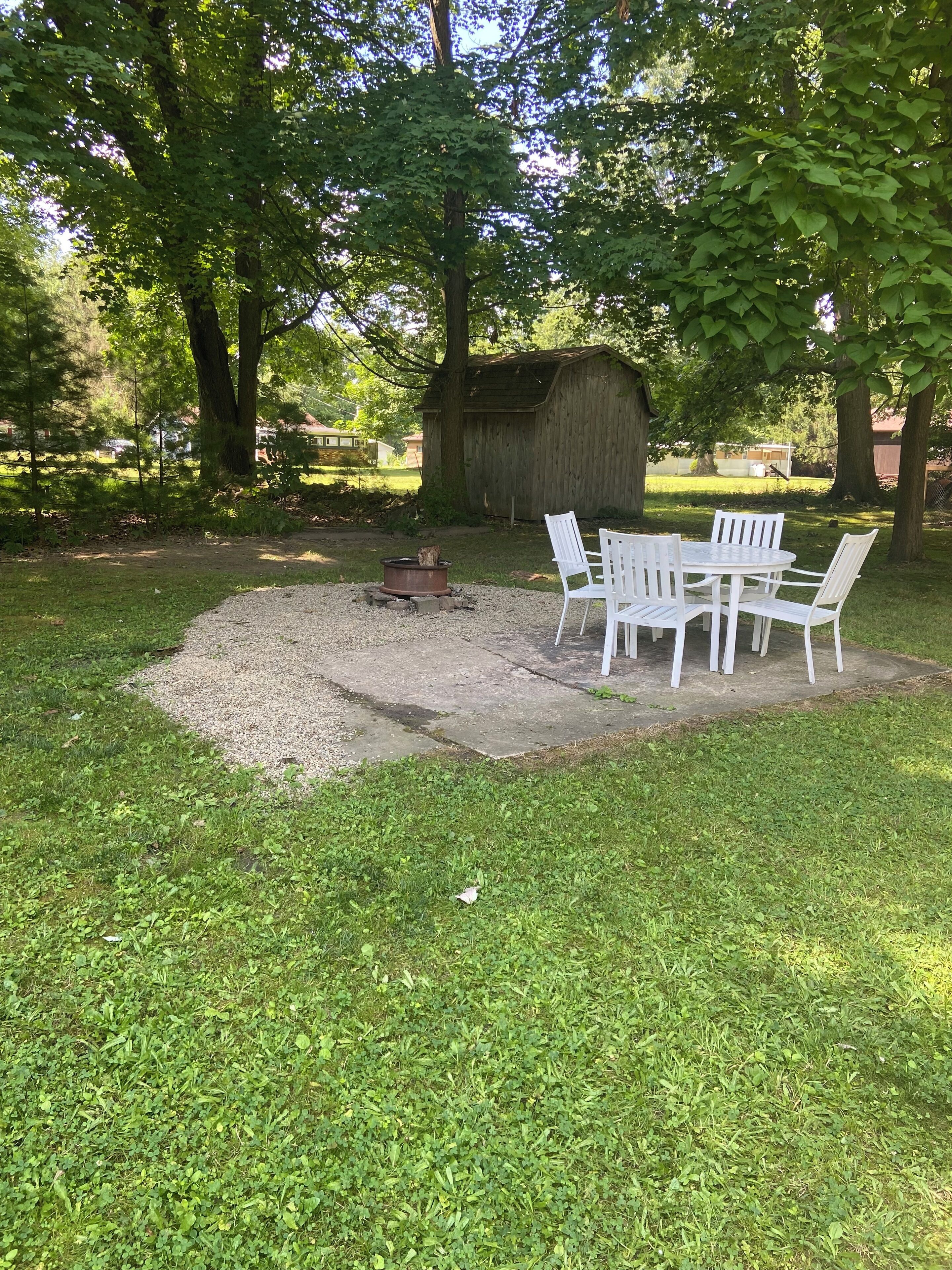 - Firepit: Located in the backyard with seating. Please exercise caution when burning in the firepit. There are Adirondak chairs in the attached garage that are available for seating around the firepit.