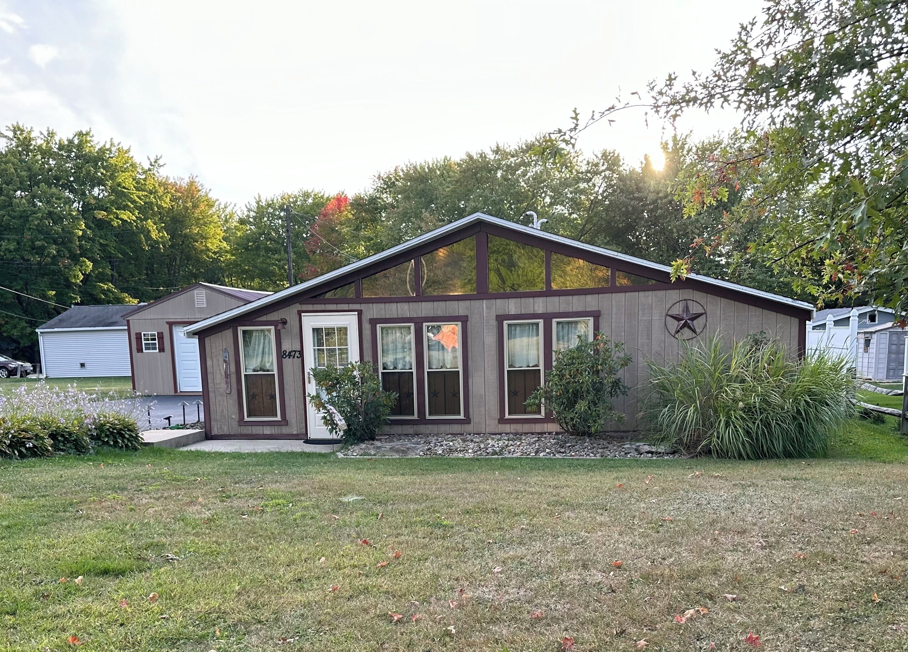 Welcome to Jean’s by the Lake. A beautiful property full of updated furnishings. Tucked away in a quiet lakeside neighborhood surrounded by the State Park. enjoy a large yard, sun room, and covered back deck overlooking the fire pit. Take a 5 minute walk to private lakefront access or explore all the area has to offer. large paved driveway for boat storage and short distance to the multiple lake access points.