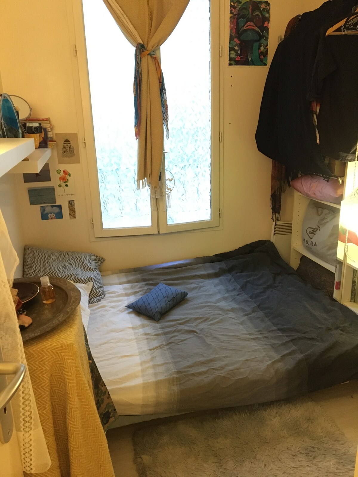 Ideal for coming to see a concert in Paris and taking the first train to Gare de Lyon or Austerlitz the next morning. Very small room in a large shared apartment, access is via a narrow staircase, the bed base is spartan, but the apartment is very well connected by public transport.