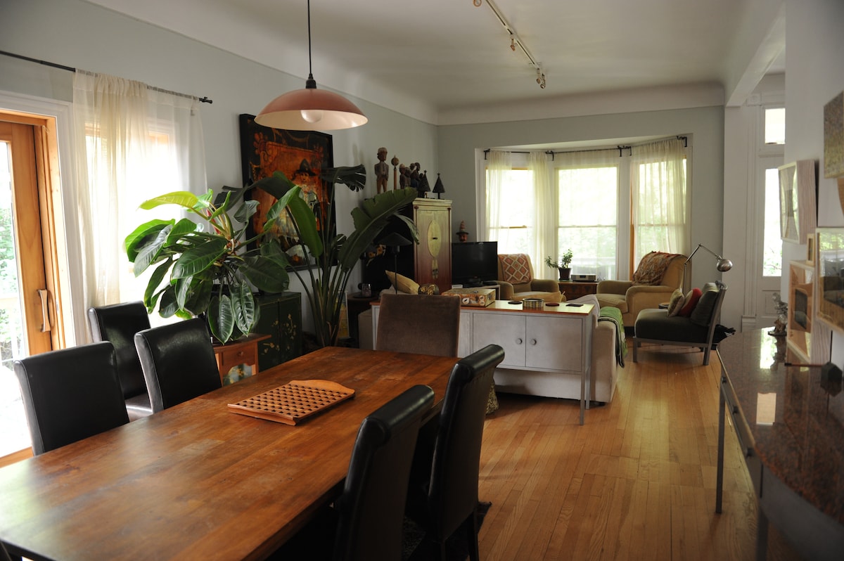 Home located between Andersonville and Lincoln Square neighborhoods, containing numerous restaurants, shops and pubs. The home is a block from the Metra Train stop as well as CTA public transportation to downtown Chicago on the EL. Well suited for families, with large fenced in yard and garden for children to play. A pull out couch in living room would accomodate 1-2 additional people. All beds are double beds. The house best accomodates 6 guests, but if you would like additional guests 2 may sleep on the pull out sofa, but we should discuss.