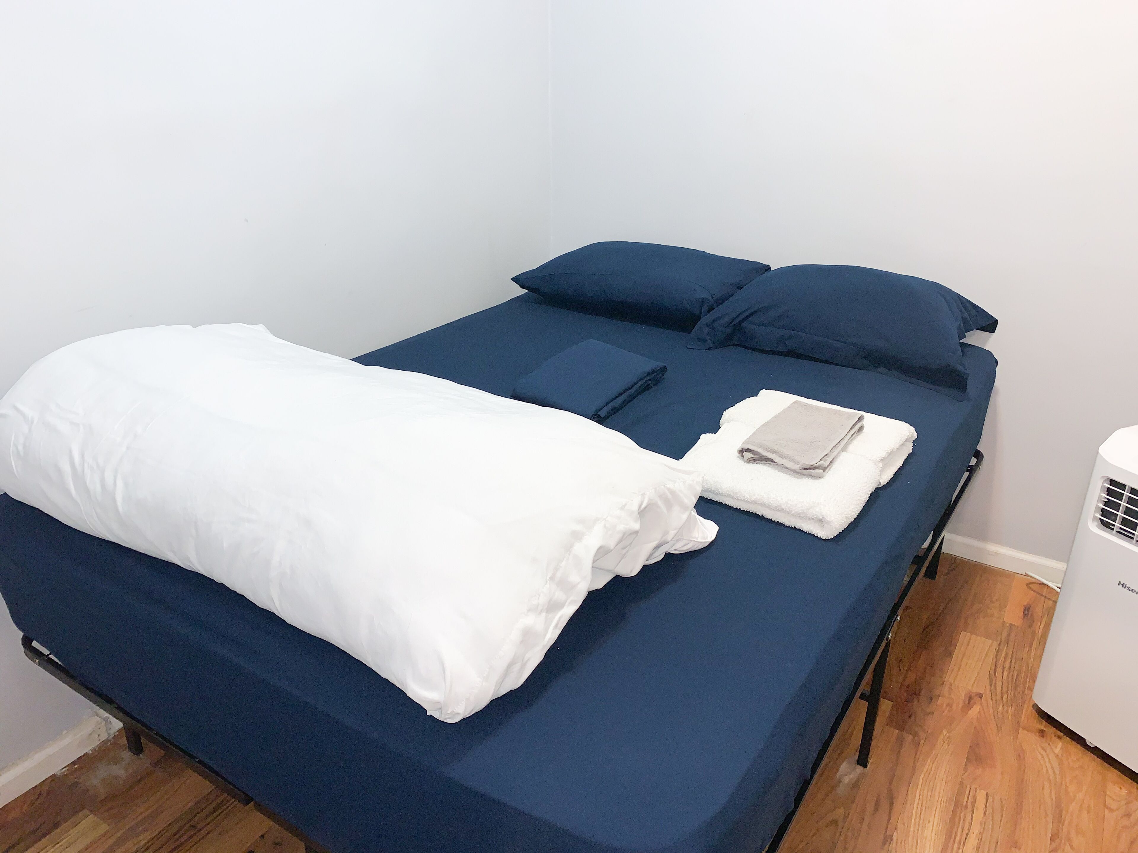 This is a small and Cozy room, this room is Unique because it is located in the middle of the building and because of this the room does not have any windows however there is a skylight, AC and Central Heating, this room is ideal with a full size memory foam mattress you are sure to have a good nights rest.
