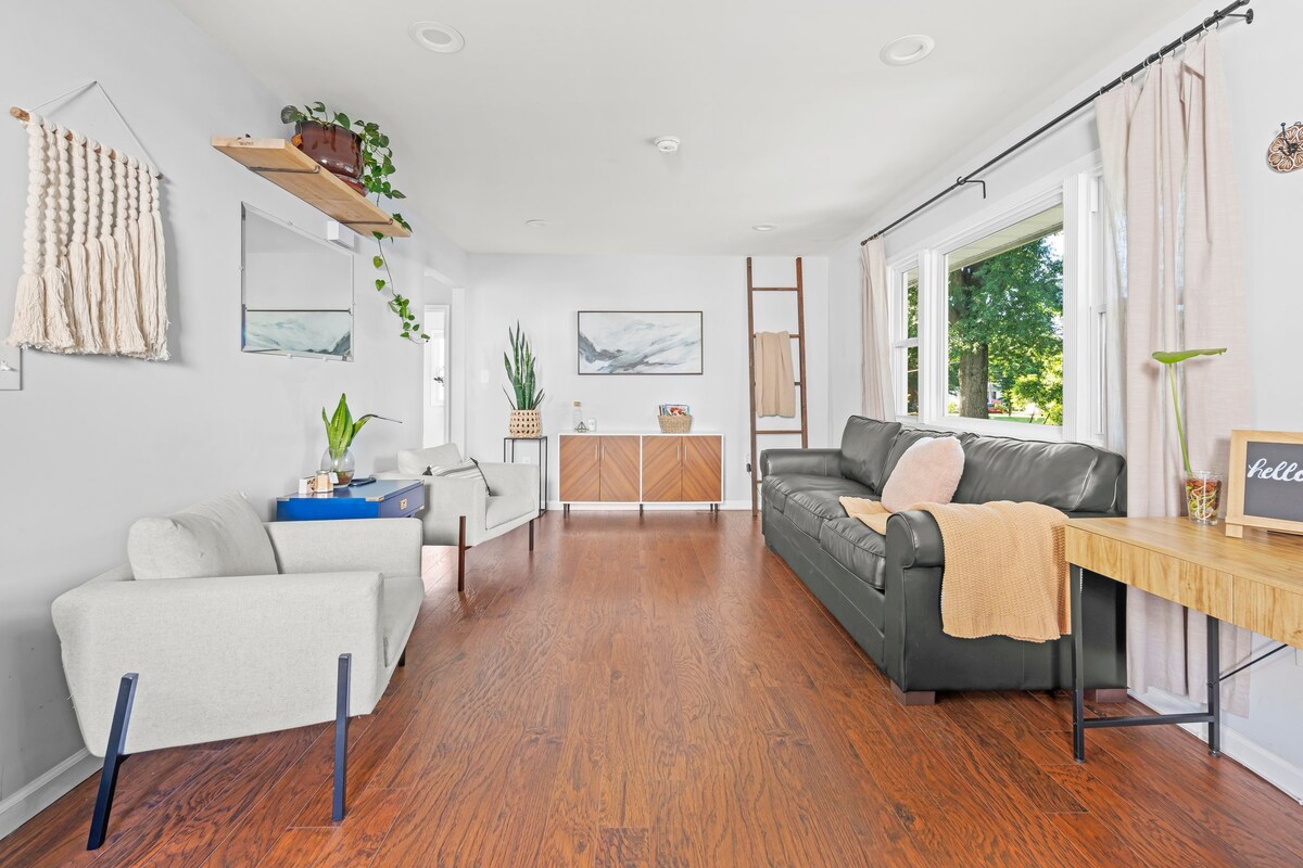 The guest suite is completely private with a separate entrance in the front of the house. This space has been recently renovated to include large bedroom windows that allow ample light, as well as an updated bathroom.