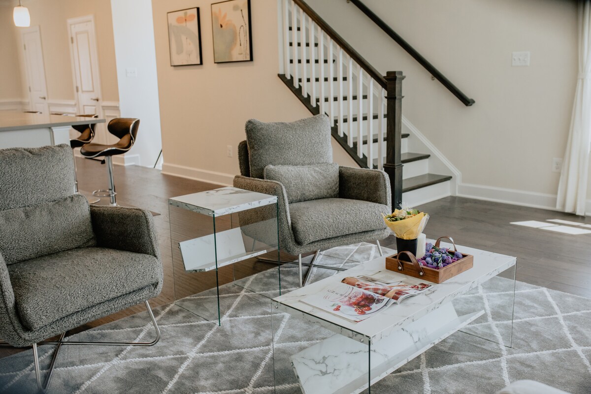 Downstairs your group can enjoy the formal dining room, movie theater-inspired living room with a 70-inch TV, a bedroom, and a full bathroom. The downstairs also offers a kitchenette complete with a Keurig and wine fridge. Lastly, the downstairs suite has a private entrance opening to the backyard!