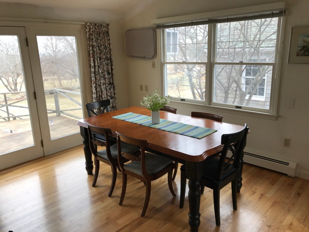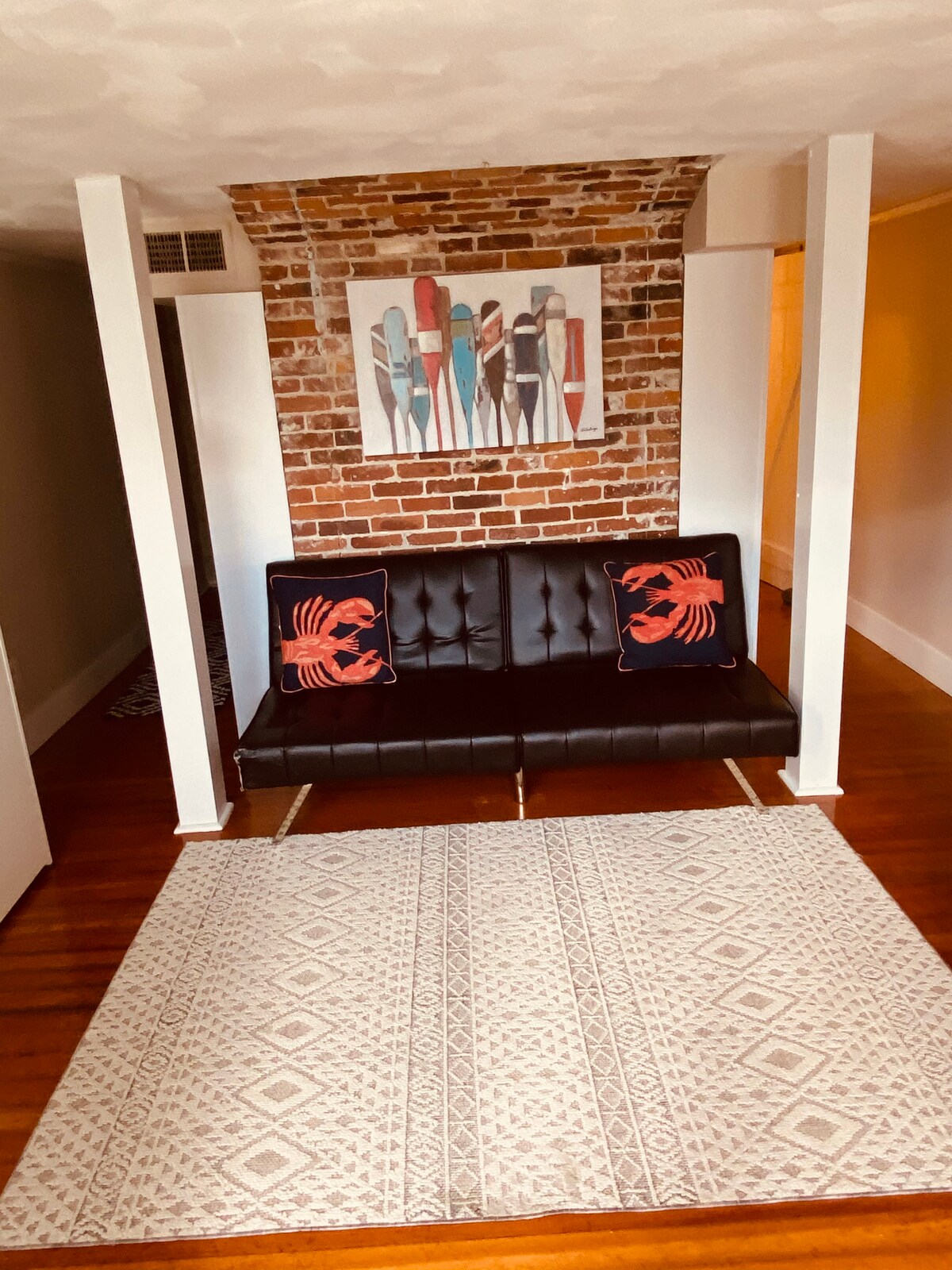 Living room at bottom of stairs with coffee maker expands your space plus use of porch, yard, outdoor shower for after the beach and gas BBQ. Limited continental breakfast items (juice, cereal etc.) provided but there are a number of restaurants and coffee shops within a 2 block radius. Microwave in living room and Mini refrigerator available in hallway on your floor with snacks and drinks for your convenience. Enjoy the BBQ and picnic table in the yard or settle into one of the old fashioned rocking chairs on the front porch overlooking the street and shops. The beach is just around the corner and all the shops, galleries and restaurants are within a short walk including historic Bearskin Neck and Shalin Liu Performance Center.
