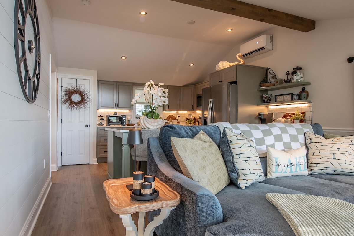 Newly renovated 1 bedroom, 1 bathroom cottage. The bedroom has a queen size bed, and a couch in the living room that pulls out to another queen size bed.