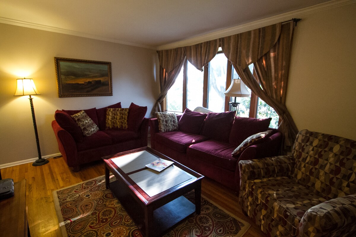 Only 10 minutes away from both cities, St. Paul & Minneapolis. Great kitchen and spacious deck. Very cozy and comfortable feel. Located in a great neighborhood that is within walking distance of most necessities.